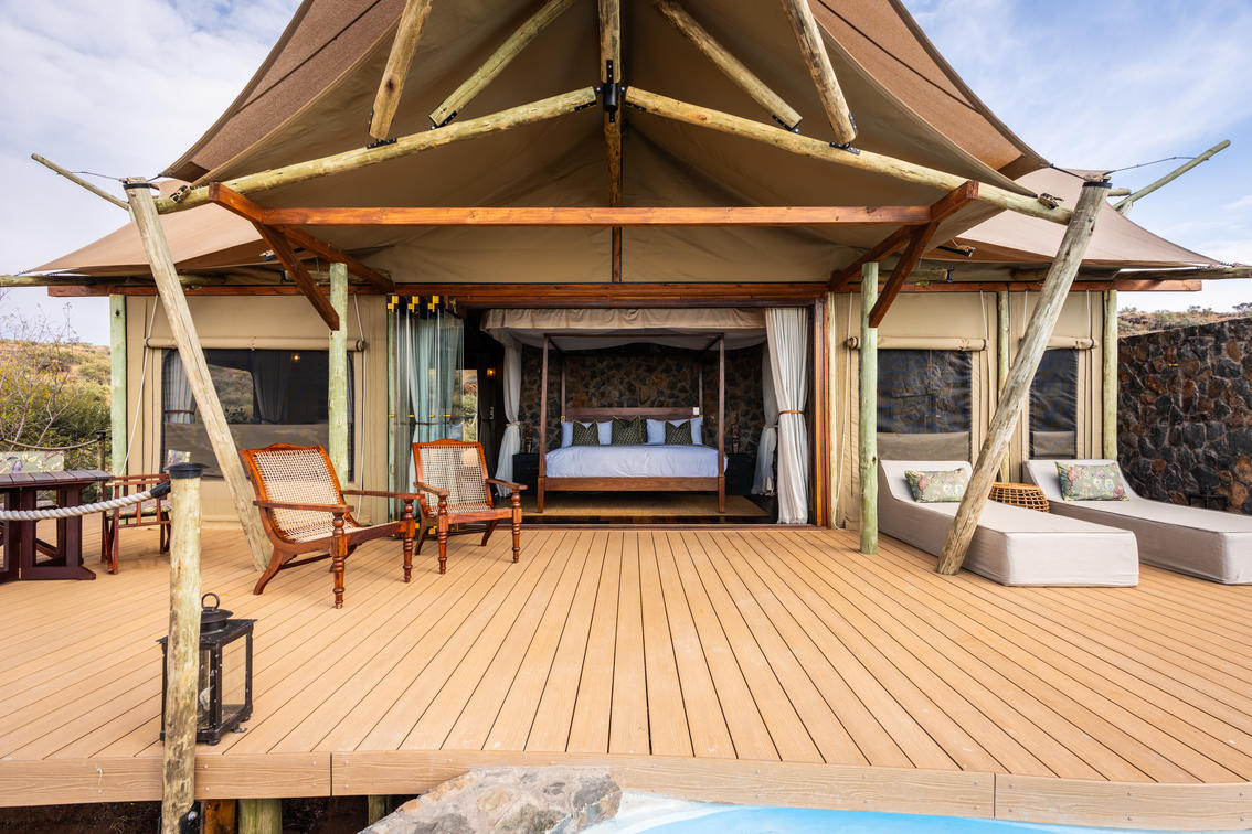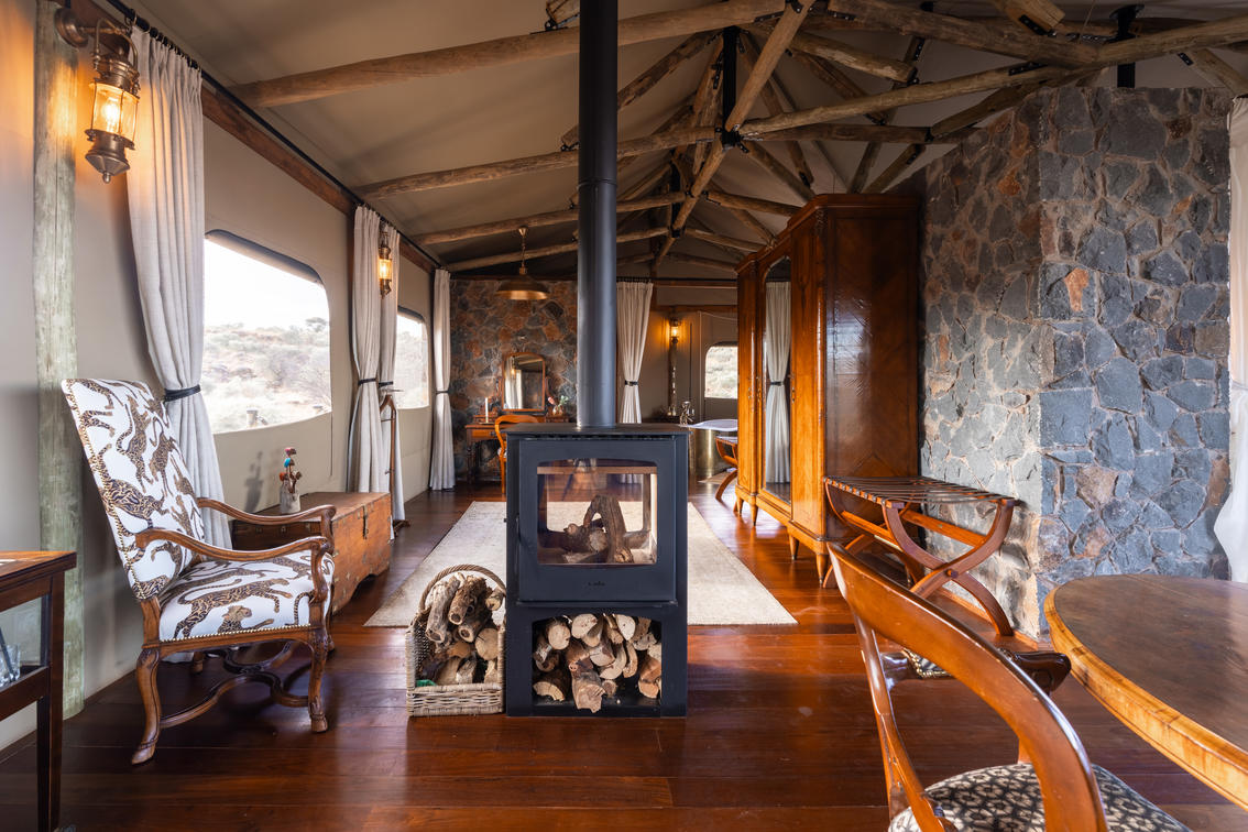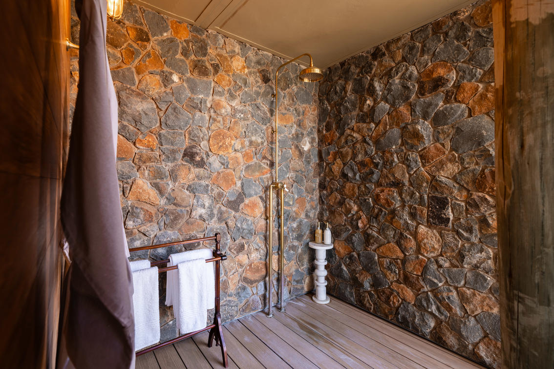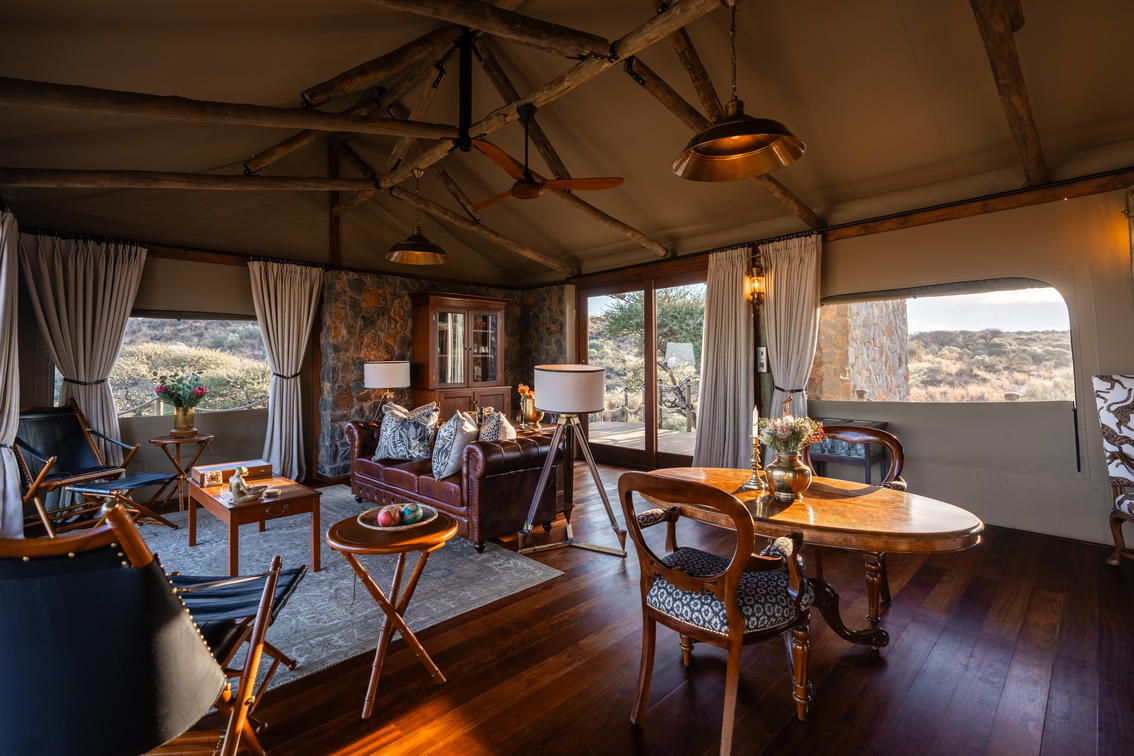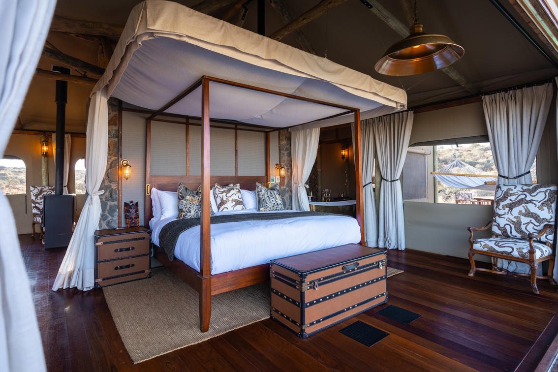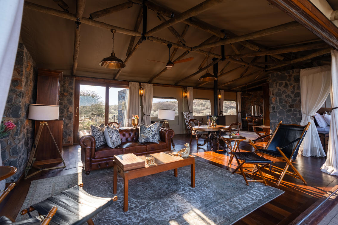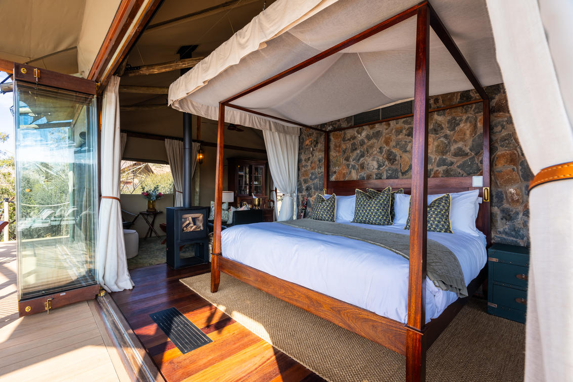 Our four standard suites offer comfort and stunning nature views. With a blend of Dutch heritage and modern design, each suite features canvas walls, stone accents, and glass doors opening to the dramatic thornveld. Enjoy amenities like Wi-Fi, en-suite bathrooms with Rain skincare products, an outdoor shower, air conditioning, king-sized beds, and a plunge pool. As the evening cools, relax by the fire with a drink from the minibar. Enjoy a peaceful night in your spacious bed, and wake up to a fresh cup of coffee from your Nespresso machine. For a morning workout, use the in-suite exercise equipment while taking in the views.