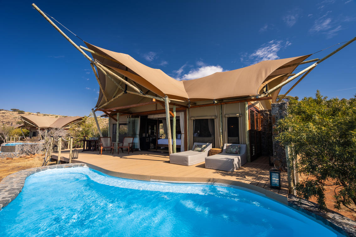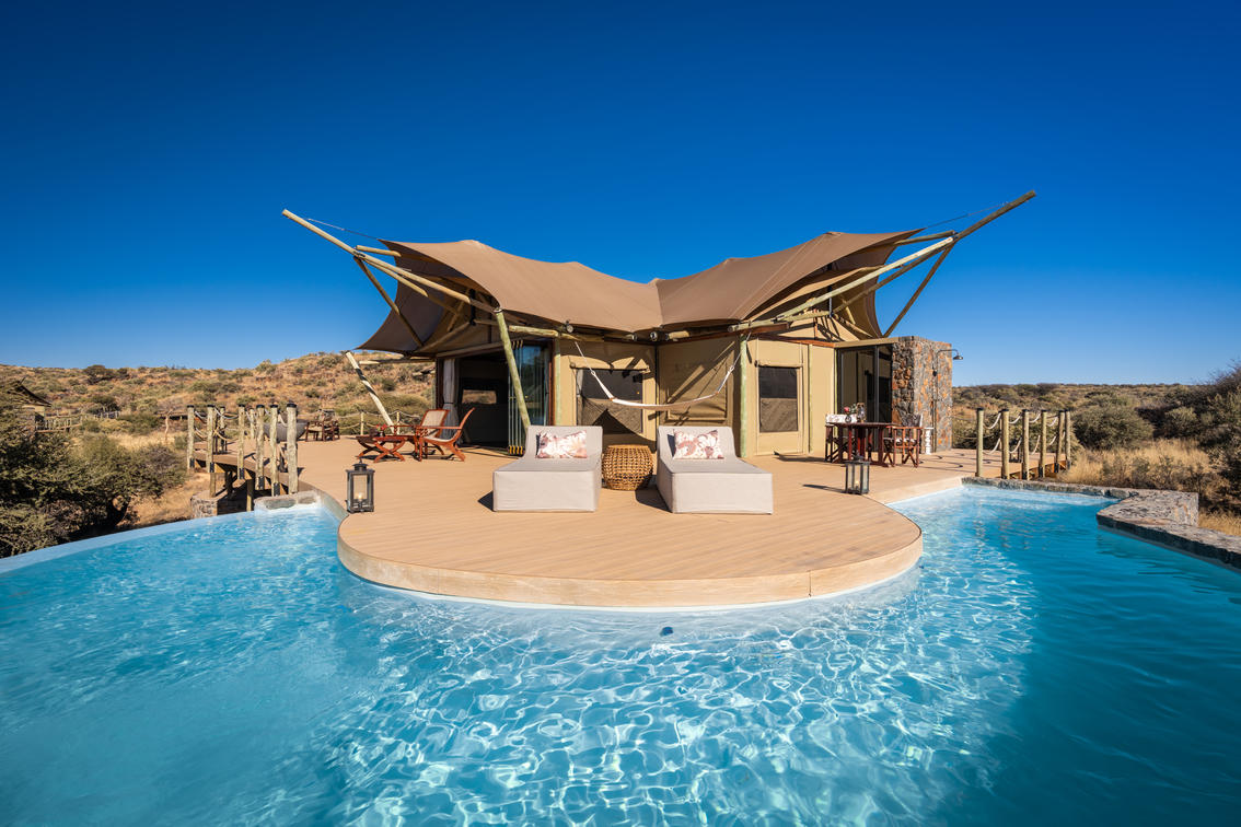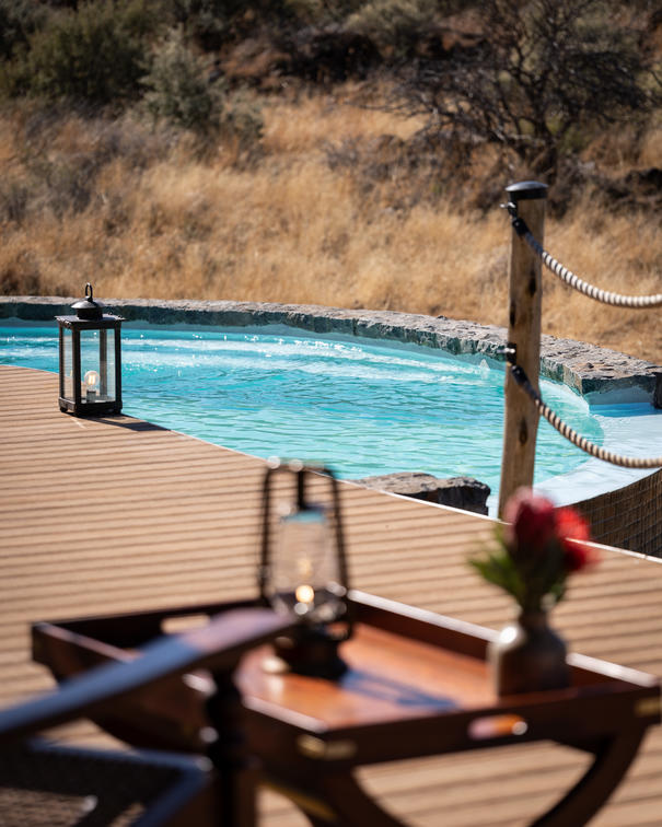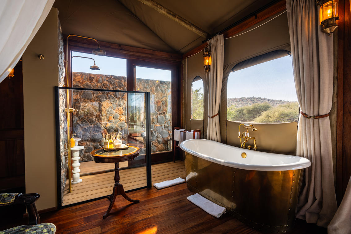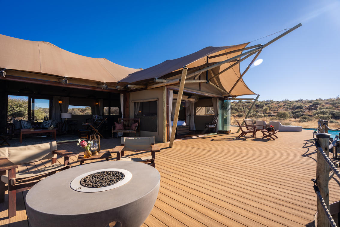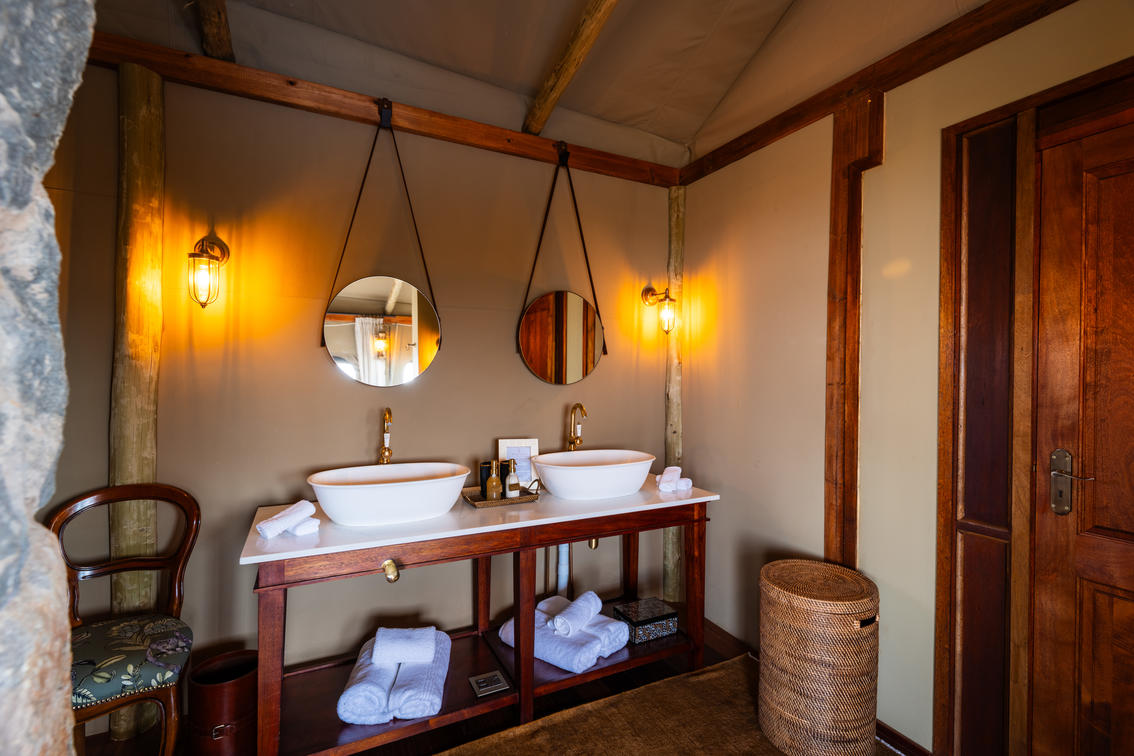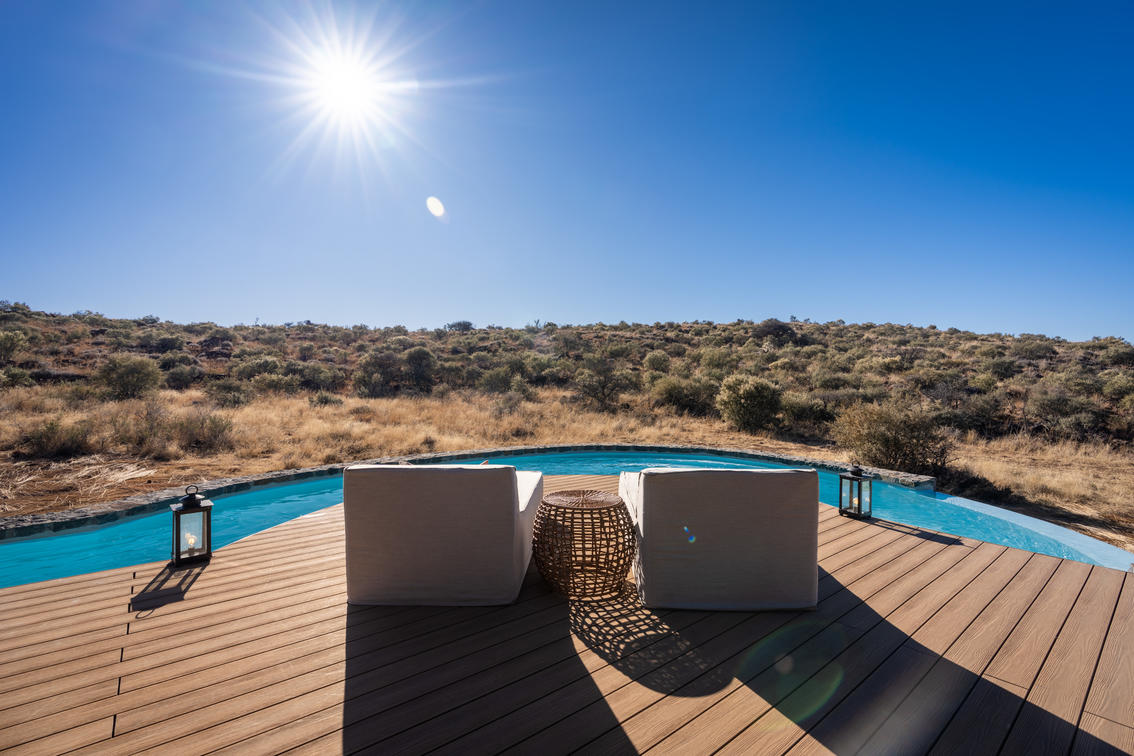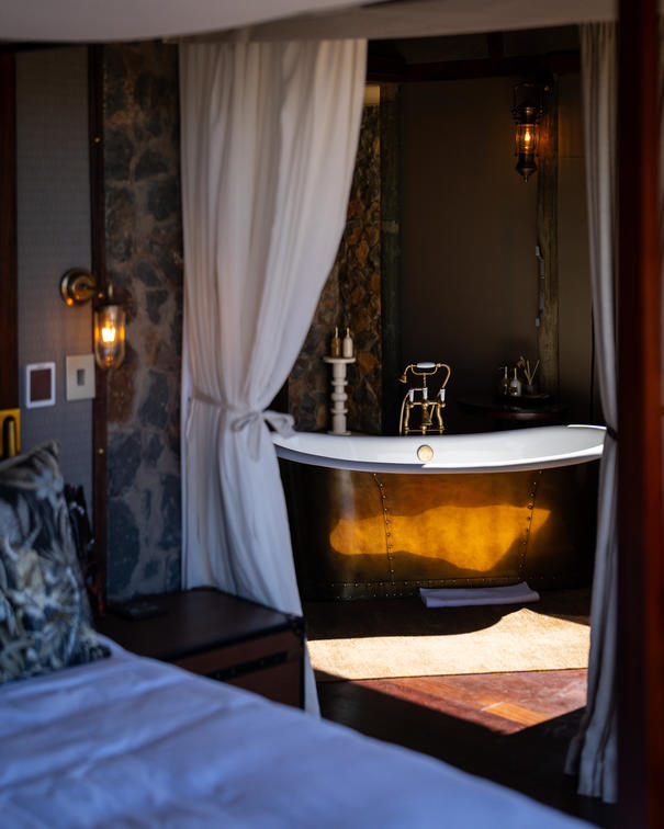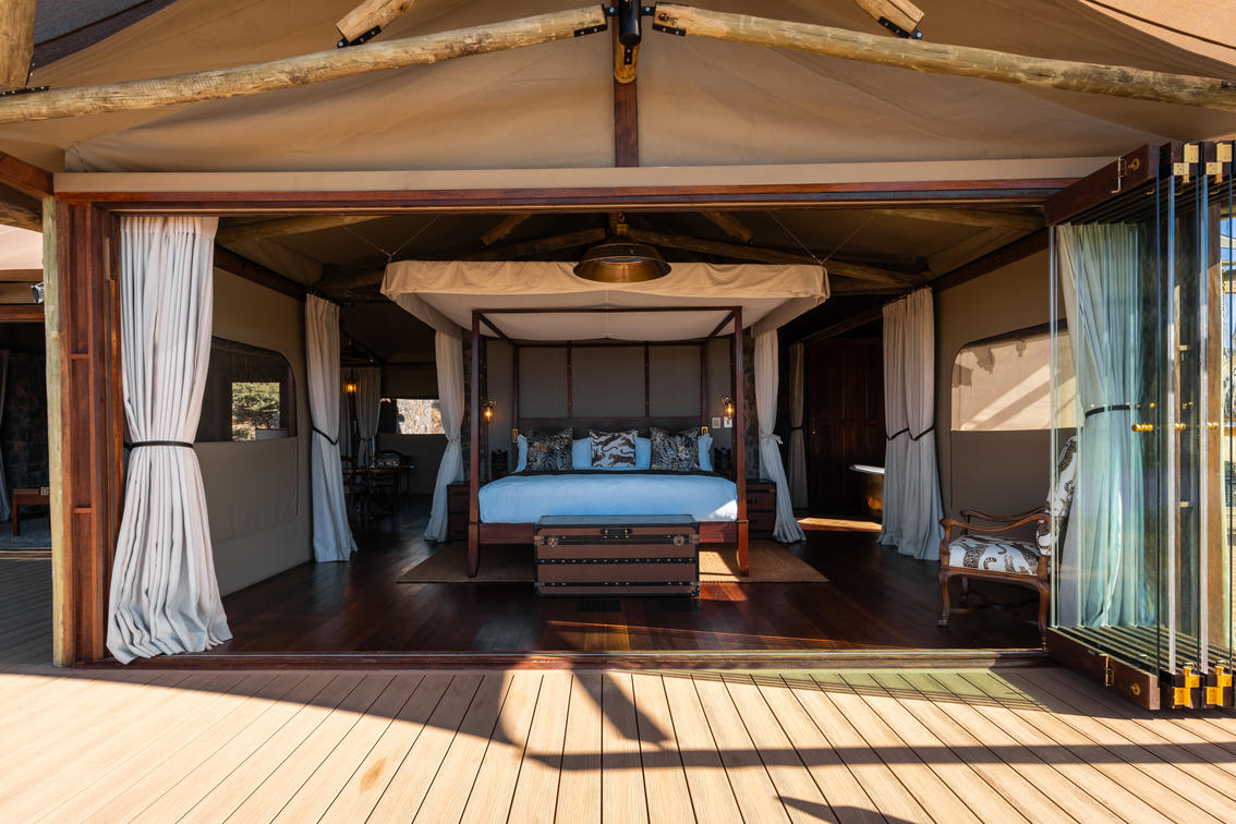 Our four standard suites offer comfort and stunning nature views. With a blend of Dutch heritage and modern design, each suite features canvas walls, stone accents, and glass doors opening to the dramatic thornveld. Enjoy amenities like Wi-Fi, en-suite bathrooms with Rain skincare products, an outdoor shower, air conditioning, king-sized beds, and a plunge pool. As the evening cools, relax by the fire with a drink from the minibar. Enjoy a peaceful night in your spacious bed, and wake up to a fresh cup of coffee from your Nespresso machine. For a morning workout, use the in-suite exercise equipment while taking in the views.