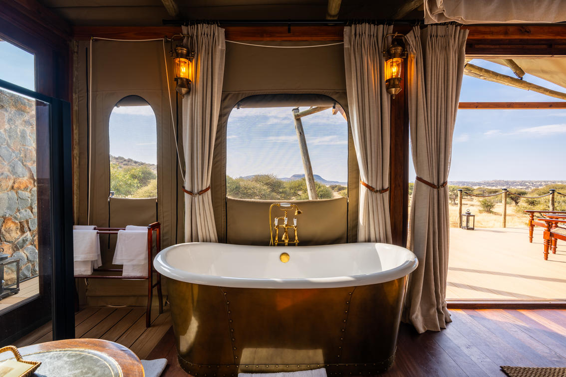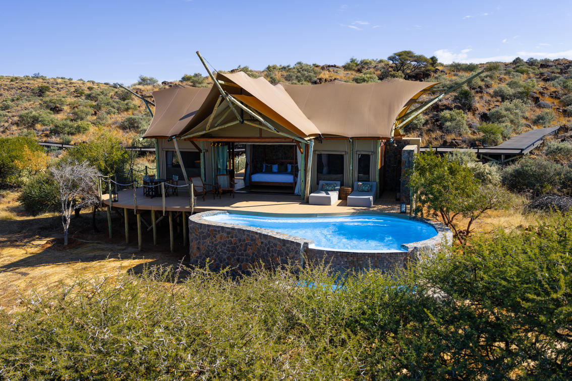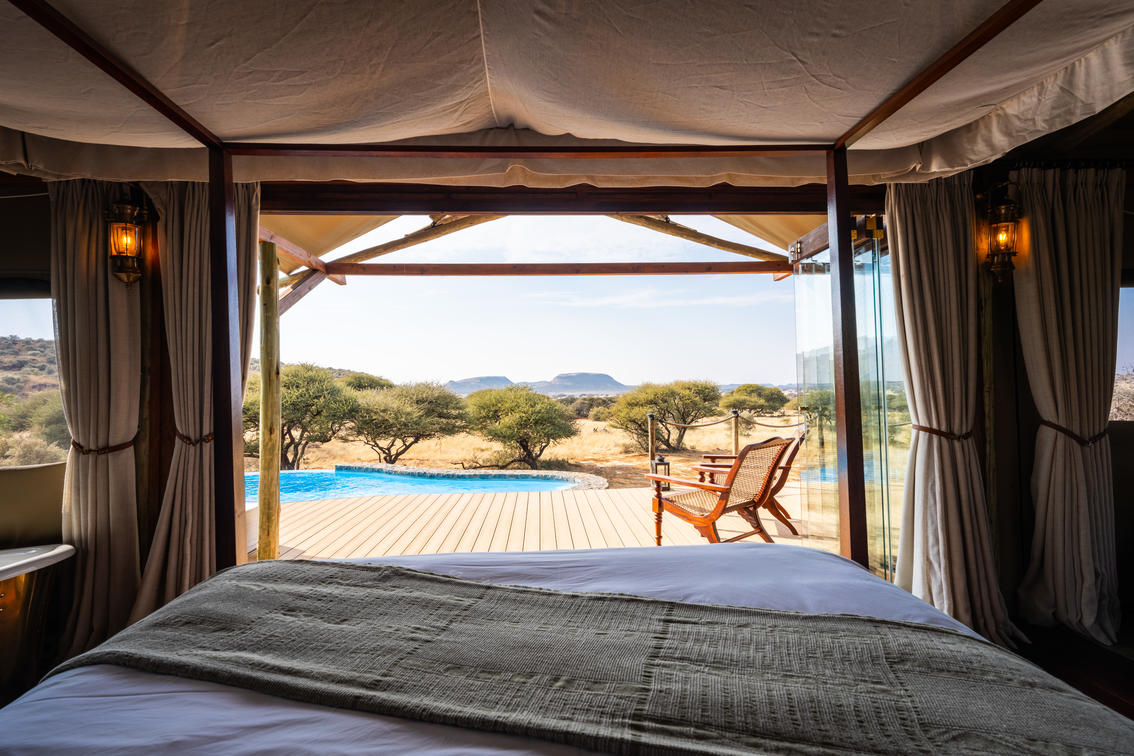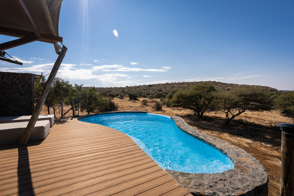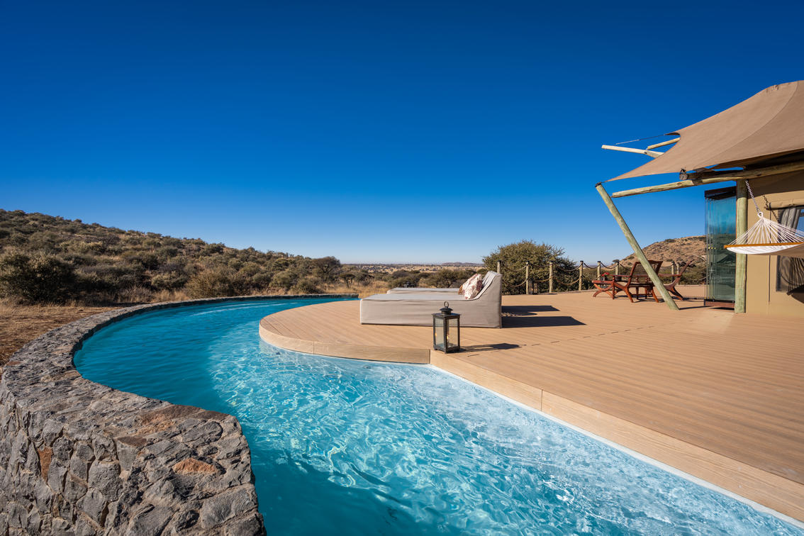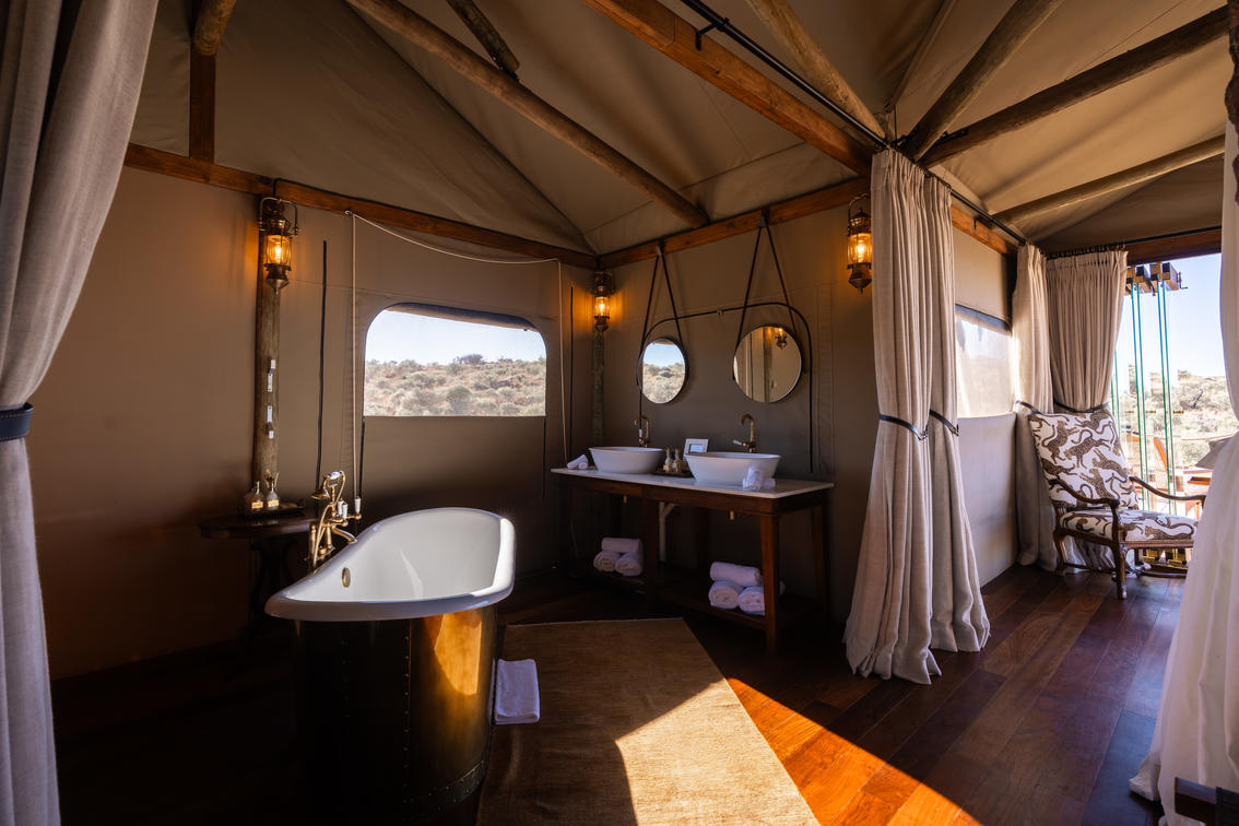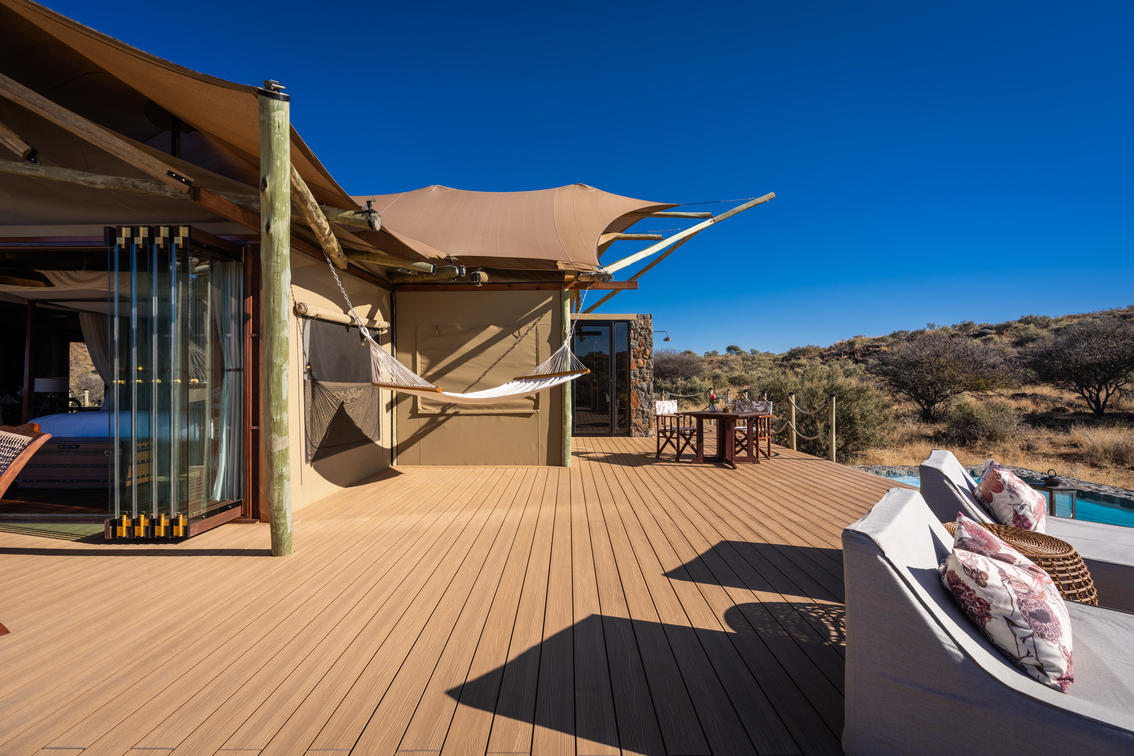 Our four standard suites offer comfort and stunning nature views. With a blend of Dutch heritage and modern design, each suite features canvas walls, stone accents, and glass doors opening to the dramatic thornveld. Enjoy amenities like Wi-Fi, en-suite bathrooms with Rain skincare products, an outdoor shower, air conditioning, king-sized beds, and a plunge pool. As the evening cools, relax by the fire with a drink from the minibar. Enjoy a peaceful night in your spacious bed, and wake up to a fresh cup of coffee from your Nespresso machine. For a morning workout, use the in-suite exercise equipment while taking in the views.