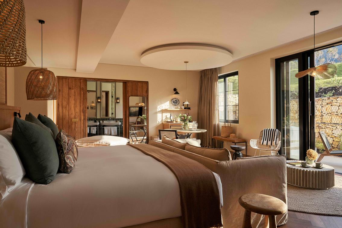 Four Bedroom Luxury Villa for exclusive use, includes three luxury suites downstairs (all with their own plunge pool) and the Penthouse suite which takes up the whole first floor. All are en-suite with indoor shower & bath, log burning fireplaces and a private deck extending from each suite. Two of the suites downstairs have Ocean, Mountain and Vineyard views and one only has Mountain and Vineyard Views. The Vineyard villa also has a communal lounge, eating area and large swimming pool. The villa has it's own spa room and gym facility too.