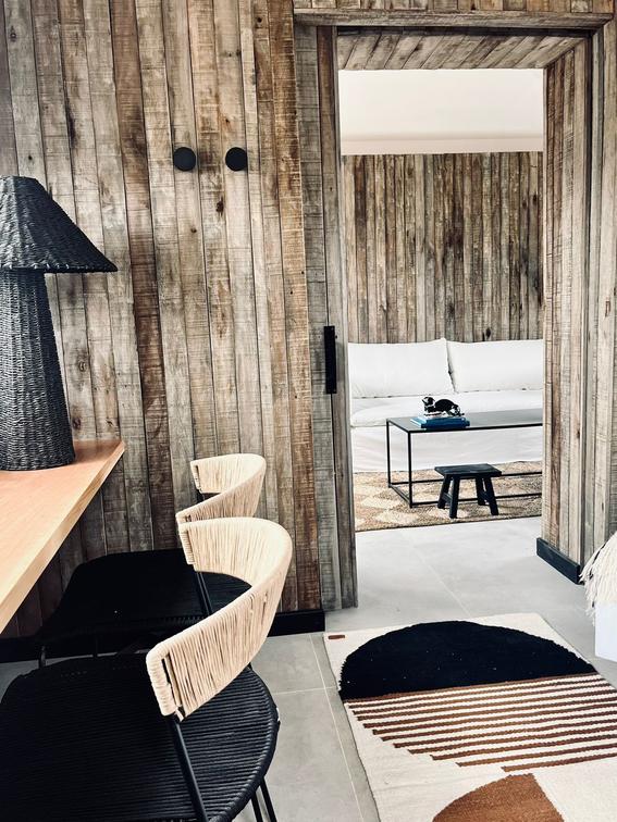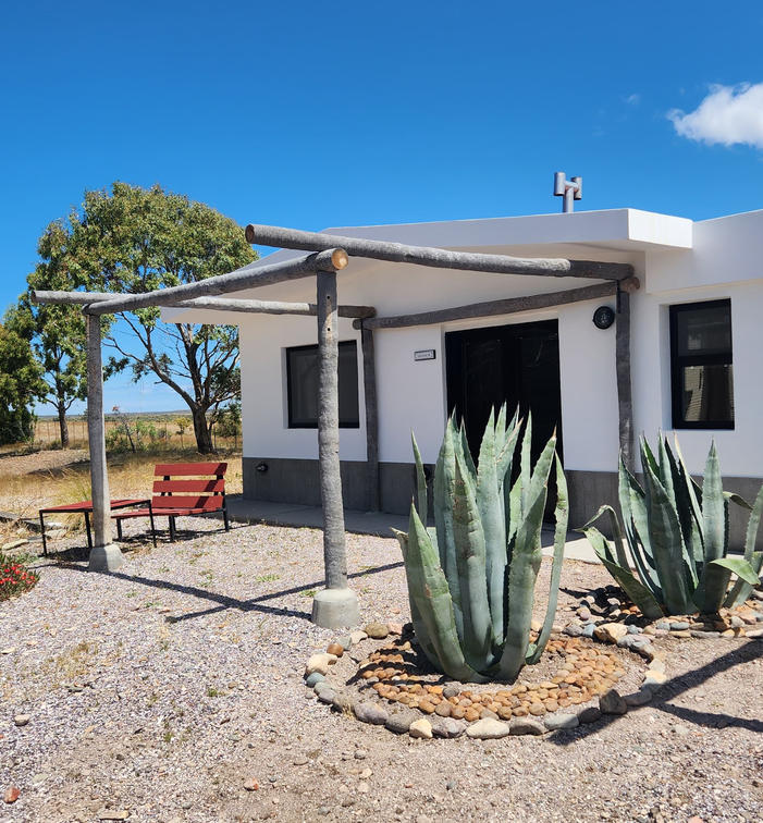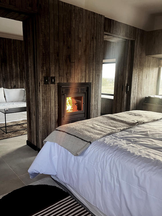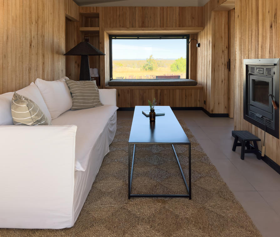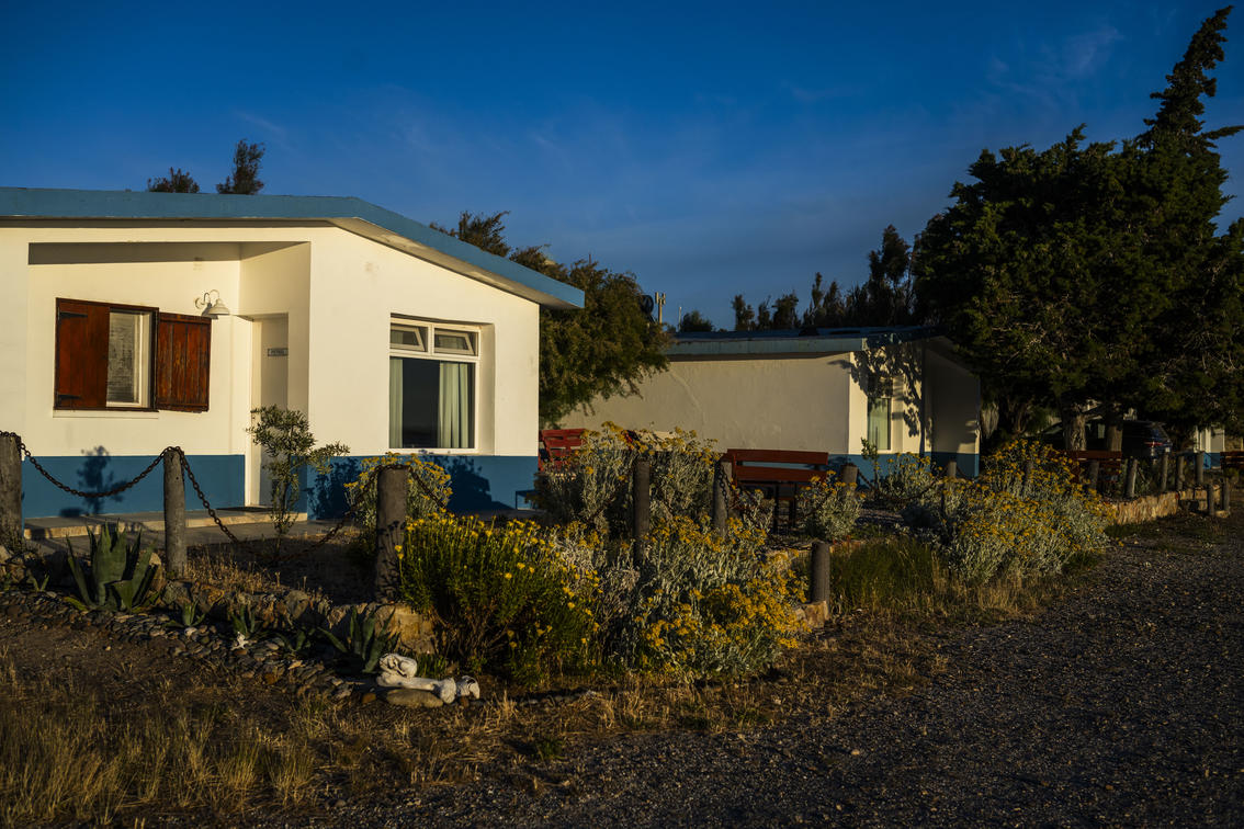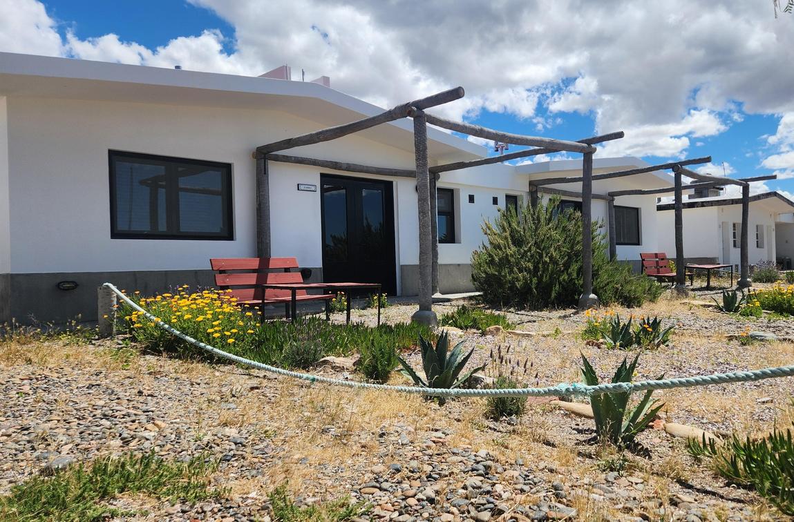 These are cabins in the second line from the coast, with a simpler style and views of the steppe and the sunset. Just a few meters away from the coast. The house is offered without activities or meals included. They have a room with a king or twin bed, a bathroom with a shower, a living room with an additional bed