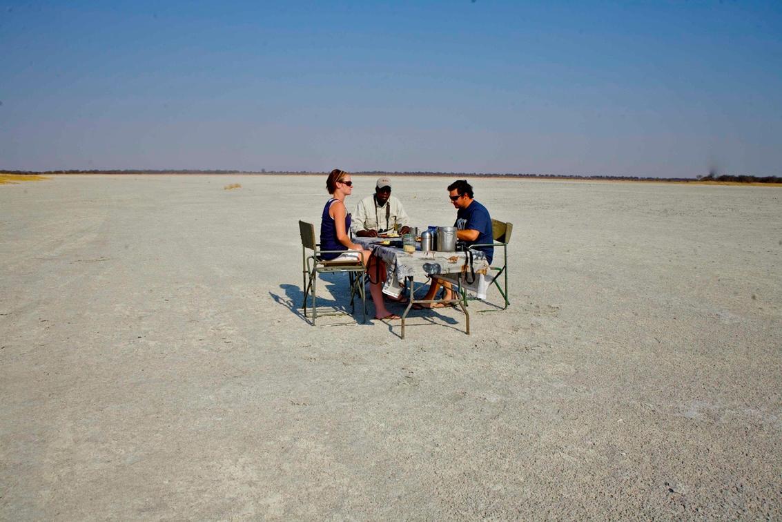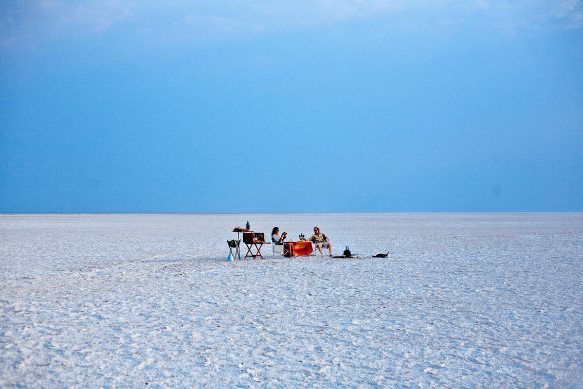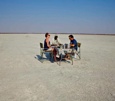 Midday Highlights: Guests visit meerkat colonies when conditions allow, followed by a scenic picnic lunch, enjoying sweet and savory treats while taking in the vast, open pans.