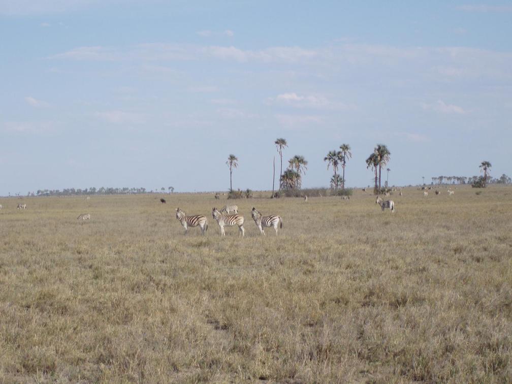 Nxai Pans, part of the Makgadikgadi Pan Complex, features grassy plains dotted with Acacia trees and iconic Baines’ Baobabs. It hosts the annual zebra migration and diverse wildlife, including impala, springbok, gemsbok, cheetah, and brown hyena.