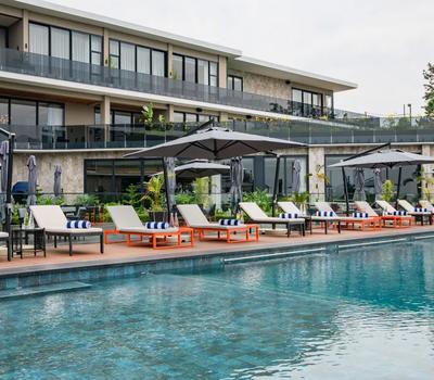 In the evening, cosy up to the outdoor fire pit before or after dinner, an aperitif or digestif in hand, from the poolside bar. There, now you can call it a night in style.