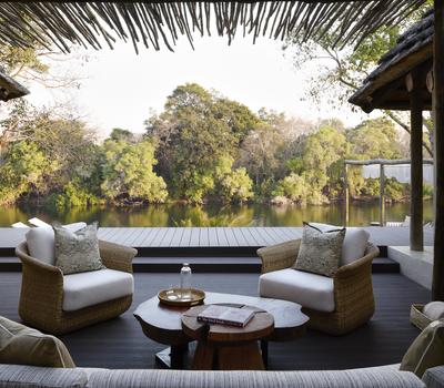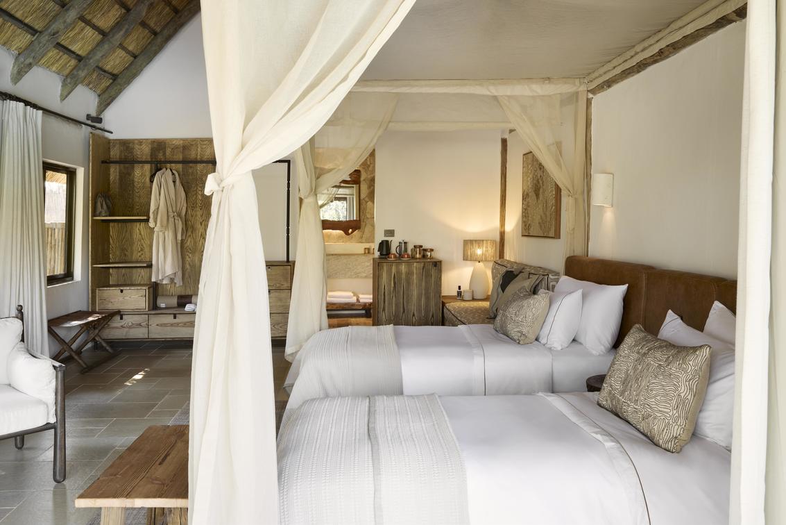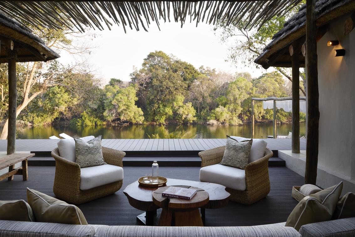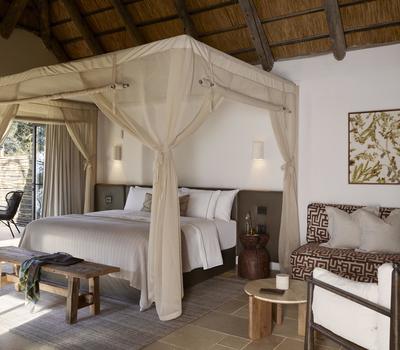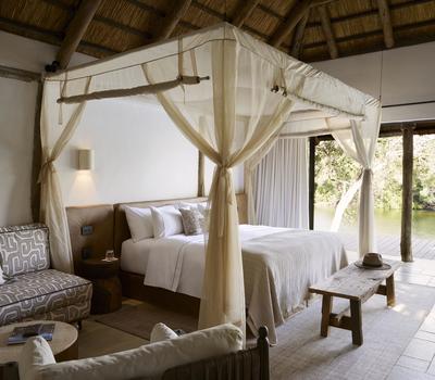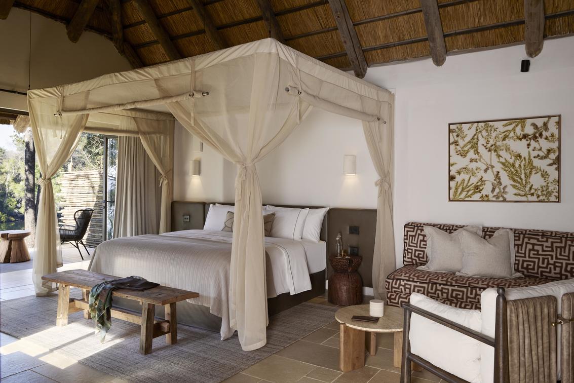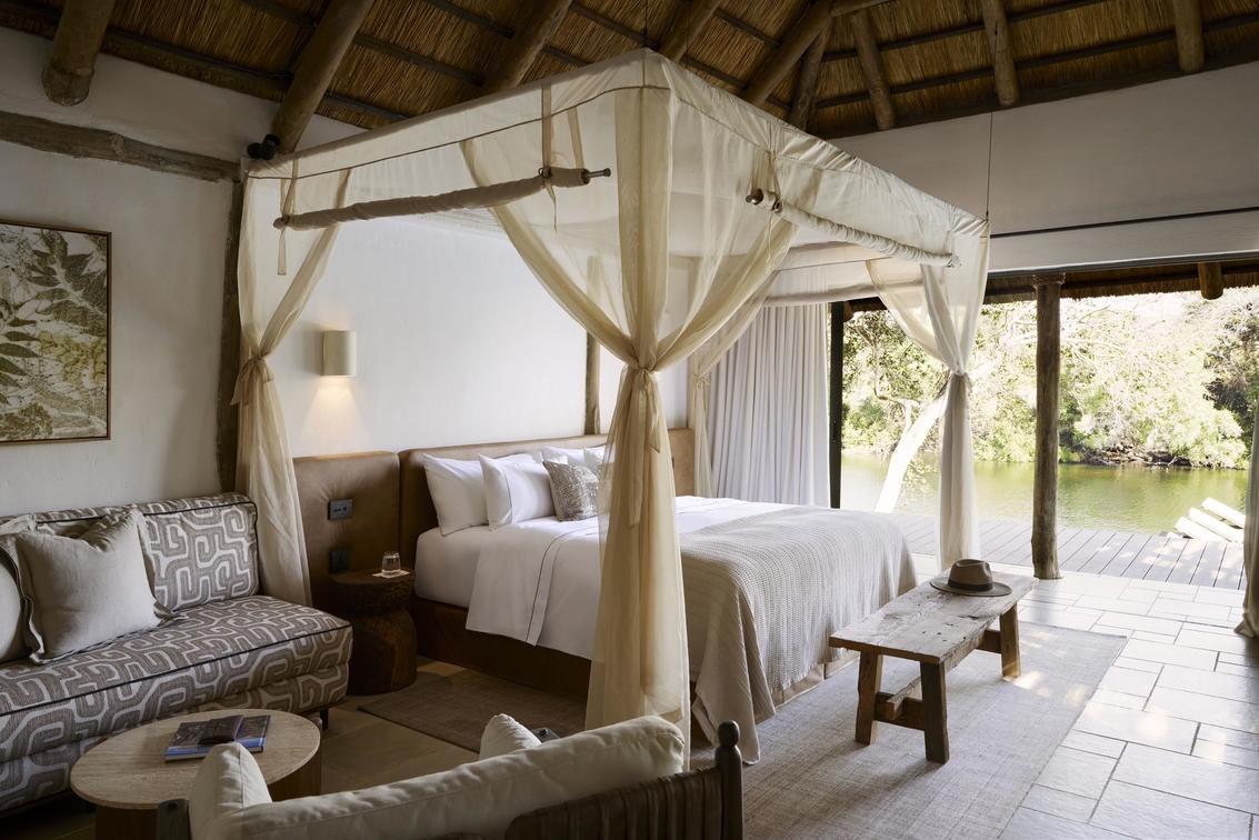 The Junior Suite, measuring 86m², offers refined comfort with sweeping views of the Lunga River. Designed with space and elegance in mind, it features an expansive en-suite bathroom, a private lounge area, and both indoor and outdoor seating for moments of quiet reflection. Blending contemporary luxury with the surrounding wilderness, the suite provides an exclusive sanctuary within the reserve.