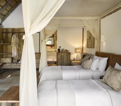 Spanning 97m², the Family Room is thoughtfully designed to bring loved ones together in comfort and style. Overlooking the Lunga River, it features two en-suite bedrooms, a spacious shared lounge, and inviting indoor and outdoor seating areas. Perfect for families or small groups, it combines generous space with the tranquillity of the reserve, ensuring a memorable stay for all ages