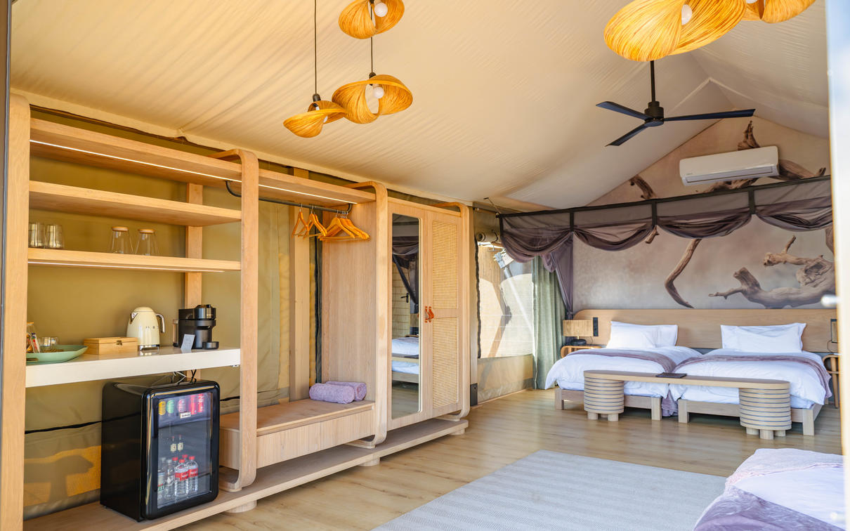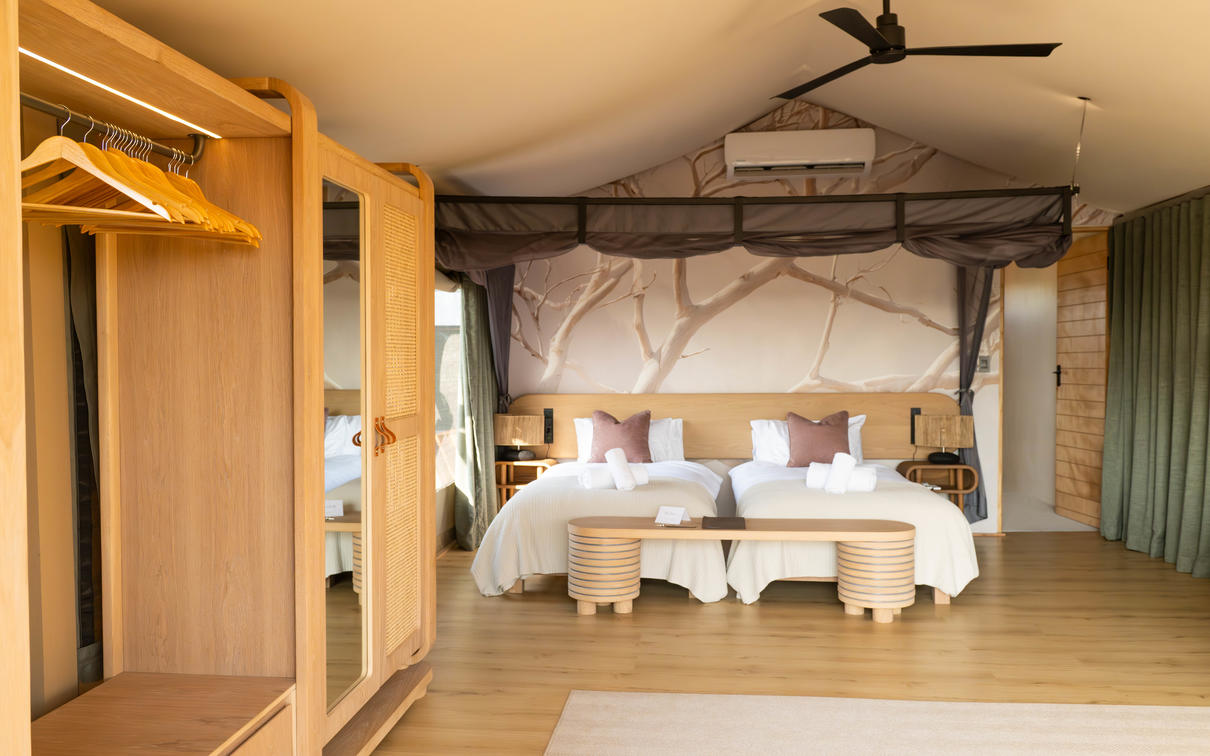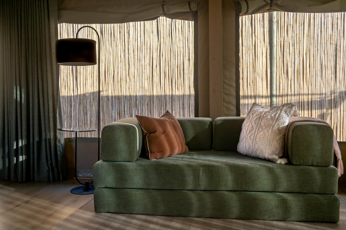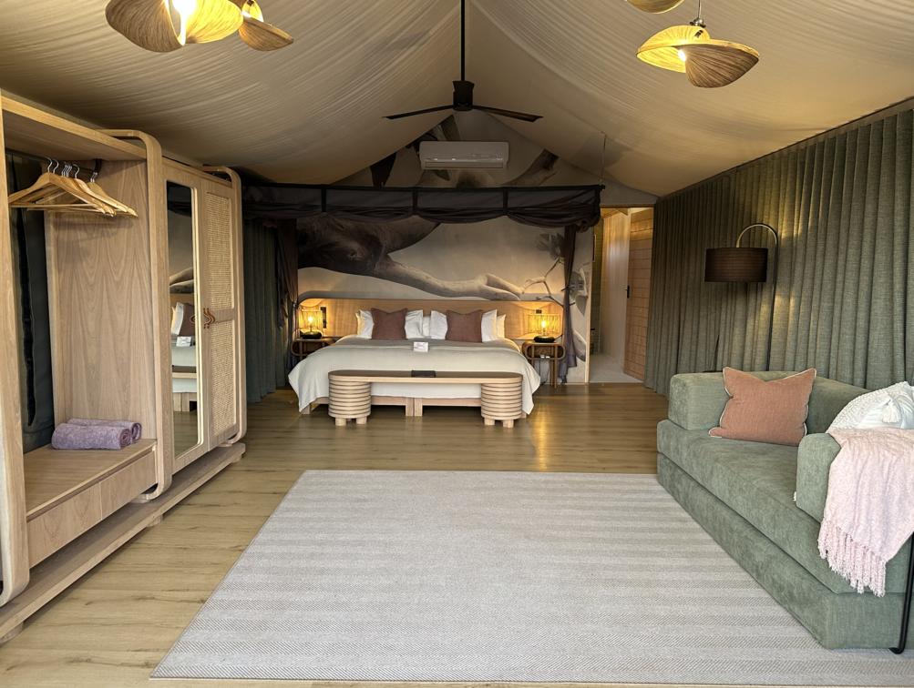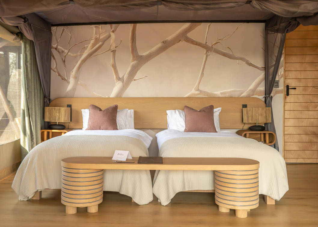 Inspired by different trees indigenous to the Kruger area, the tented suite includes a super king bed (can split into 3/4 beds) and a sofa bed. In addition to the luxurious modern decor, highlighting features include a plunge pool and outdoor shower.