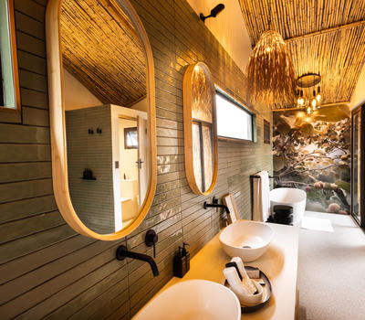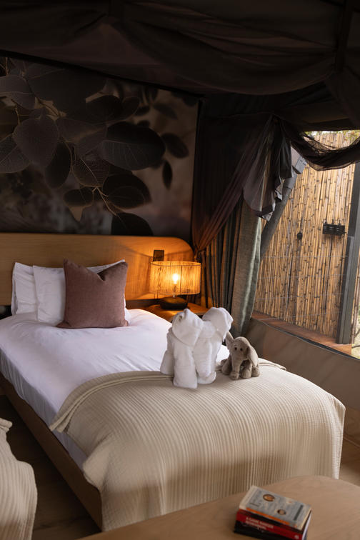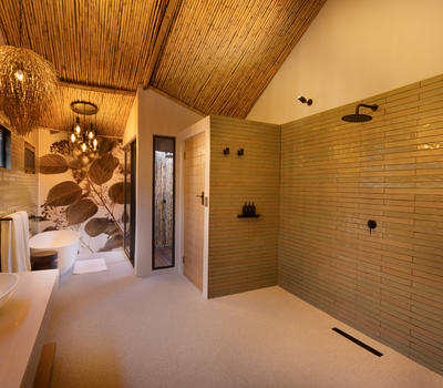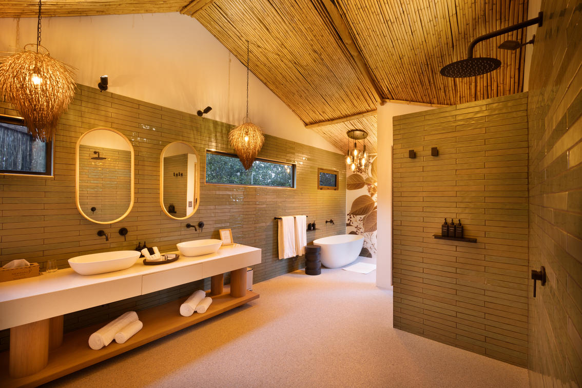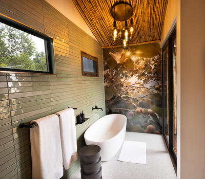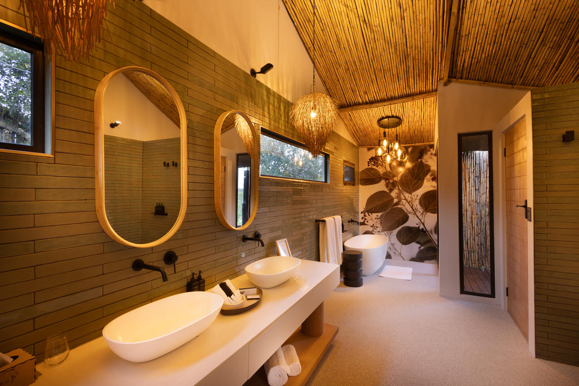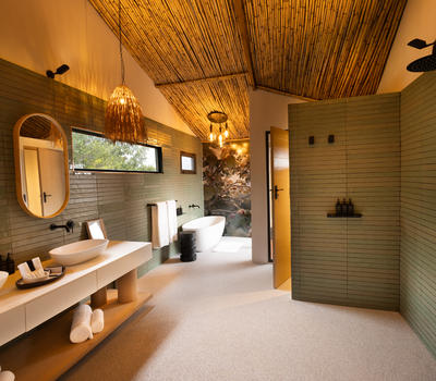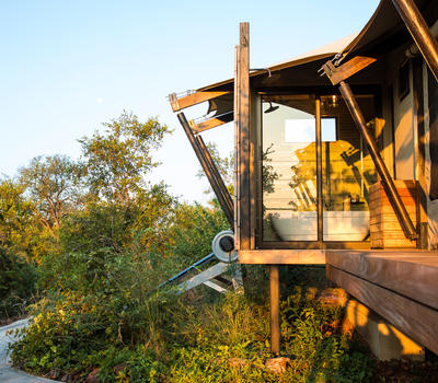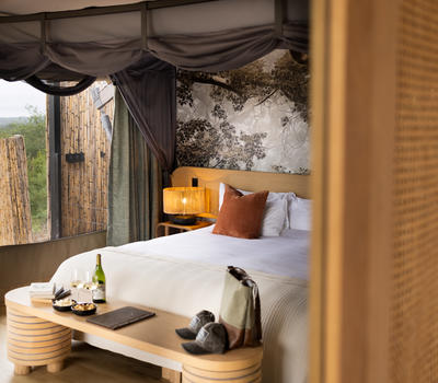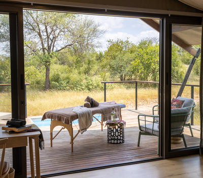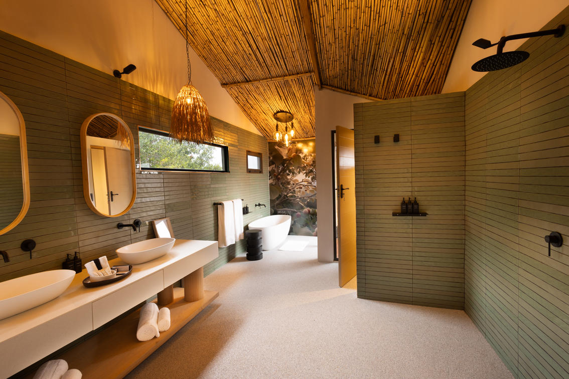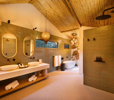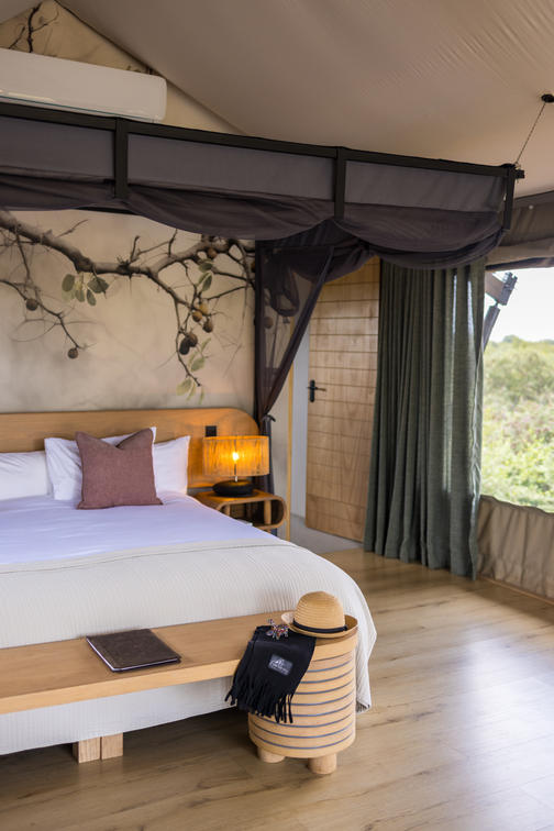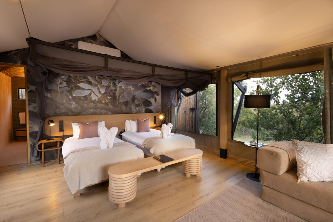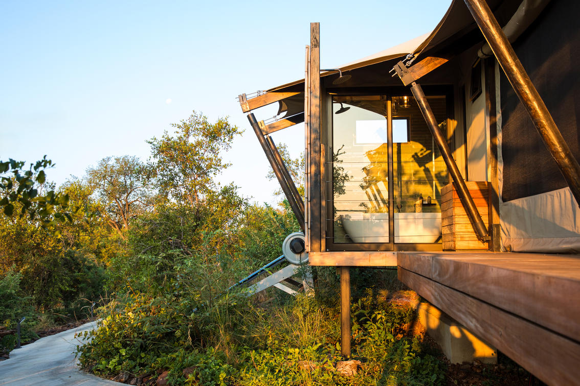 Inspired by different trees indigenous to the Kruger area, the tented suite includes an extra length Super King bed (can split into 3/4 beds) and a sleeper couch. In addition to the luxurious modern decor, highlighting features include a plunge pool and outdoor shower.