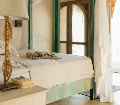 These villa suites include king beds (that can split into twin beds) with an outdoor shower and a bathroom with a bathtub. It features a balcony with ocean views, a sitting area, mosquito netting and free Wi-Fi. Coffee/tea provided on request.