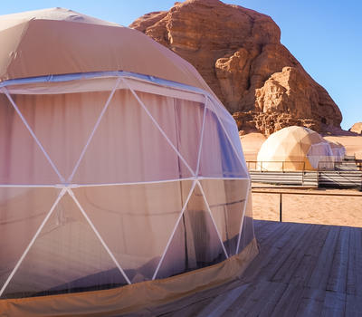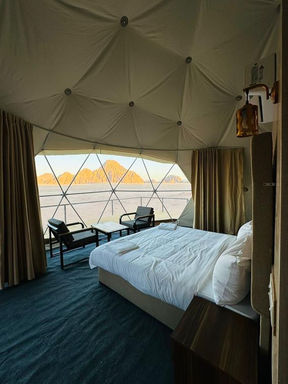Step into a world of comfort and wonder in our Martian Tent, designed to offer a luxurious and immersive desert experience beneath Wadi Rum’s breathtaking star-filled skies. With its panoramic dome-style design, this unique tent allows you to enjoy uninterrupted views of the desert landscapes by day and the Milky Way by night.