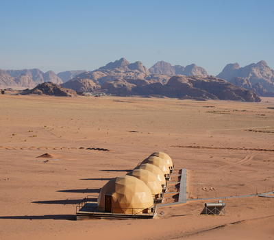 Each Martian Tent is tastefully furnished with modern amenities and elegant décor inspired by Bedouin tradition, ensuring both style and serenity throughout your stay. The tent features a private bathroom, seating area, and large clear panels that bring the beauty of Wadi Rum right to your bedside.
