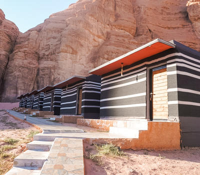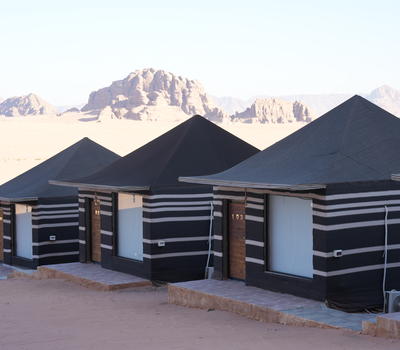 After a day of exploring the desert, relax in your private space and experience the peaceful rhythm of Wadi Rum from the comfort of your Deluxe Tent.