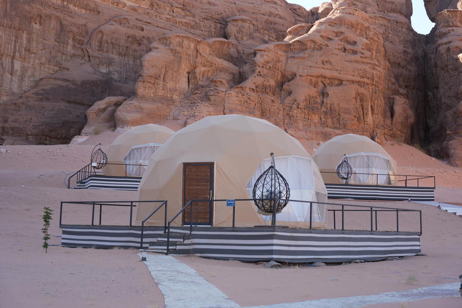 The camp features 20 luxurious Martian Tents, each elegantly designed with panoramic windows that open to the vast beauty of the desert landscape. Every tent includes a private bathroom, comfortable bedding, and modern amenities, allowing guests to enjoy the magic of the desert without sacrificing comfort.