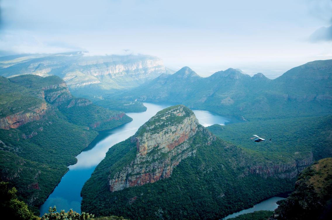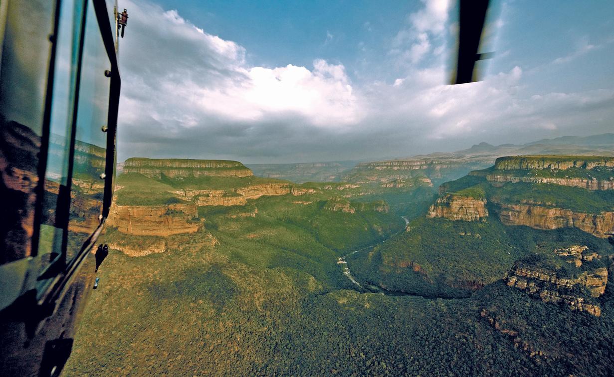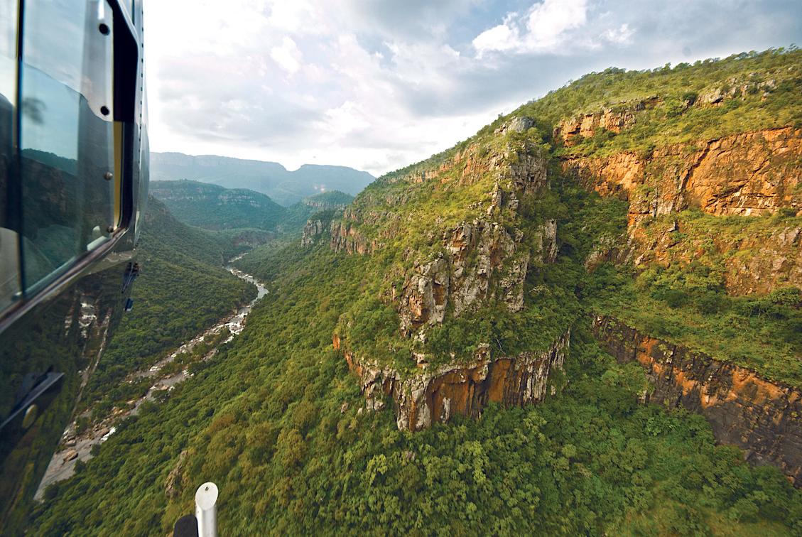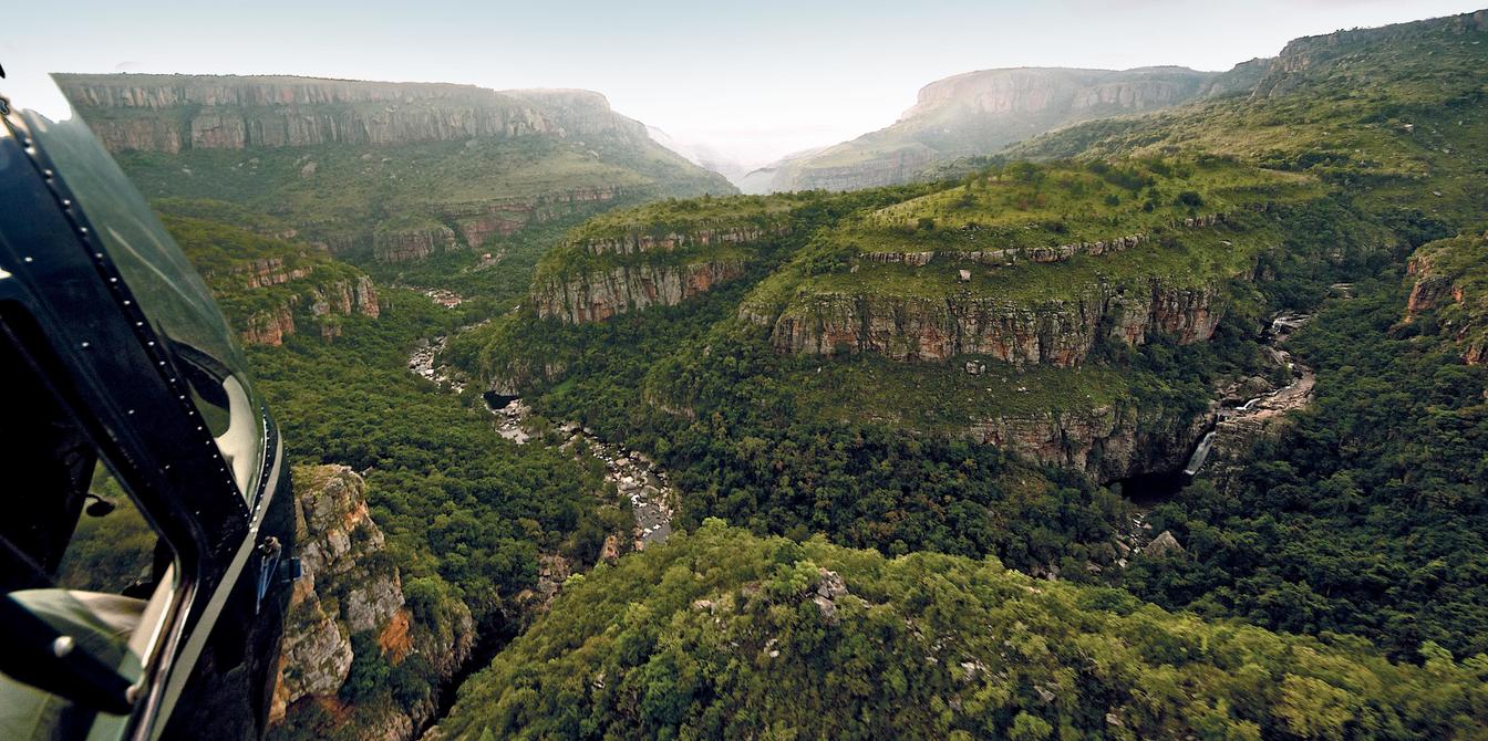 The flight will continue along the escarpment with incredible panoramic views of the Mpumalanga Lowveld, the Three Rondawels and the fascinating and dramatic rock formations of the 1 000-metre deep, 30-kilometre-long Blyde River Canyon (the third deepest and greenest Canyon in the World).