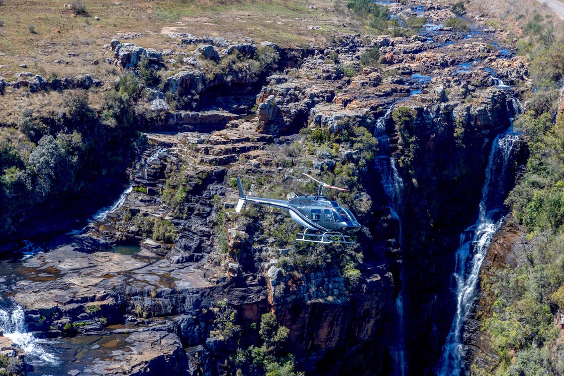 Departing from the Sabi Sands, Timbavati or Manyeleti Game Reserves, this exhilarating helicopter flight swoops over deep mysterious gorges, shadowing meandering rivers and exploring lush valleys bursting with vegetation and colour. The dramatic views of cascading waterfalls and sheer cliffs present a treasure of magnificent photographic possibilities. Experience a stunning eagle’s eye view of the breathtaking Lisbon Falls plummeting down a 92-metre precipice in four torrents before flying over the legendary Cascade, Berlin, Mac-Mac and Forest Falls.