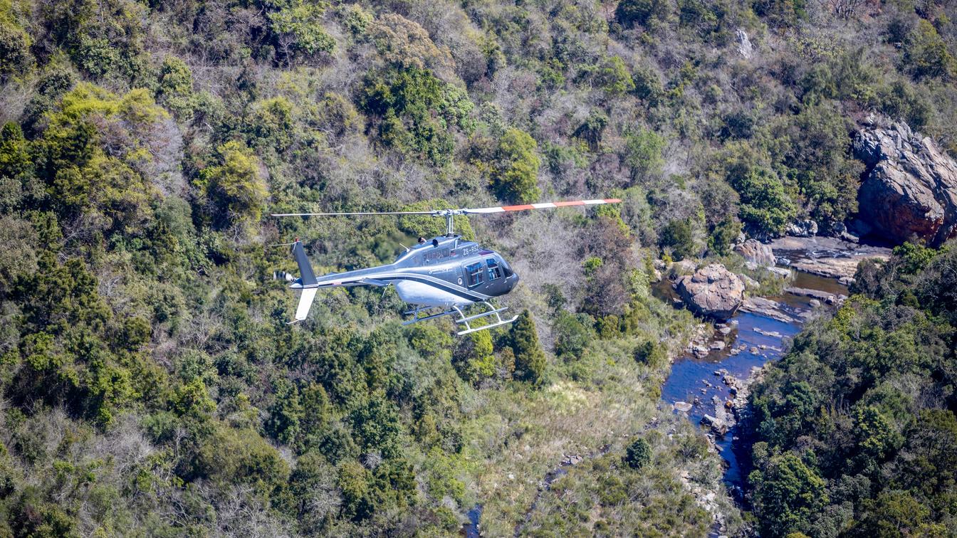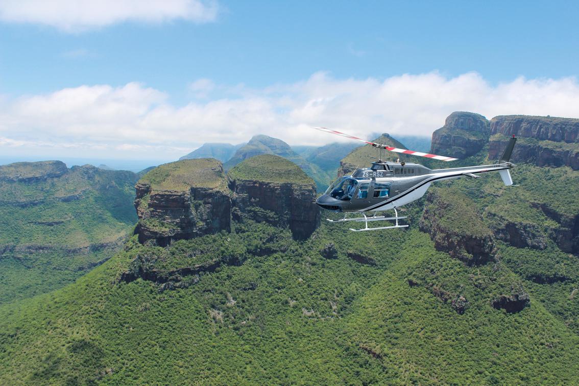 The Bell Jet Ranger 206B helicopter or the Longranger can be chartered for customized helicopter tours or flights, as well as for aerial surveys and aerial photography in the Mpumalanga region.