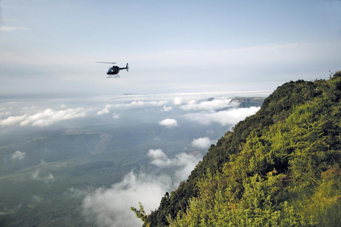 Departing from Hippo Hollow Hotel in Hazyview the helicopter shadows the Sabie River Valley along the edge of the Escarpment to the 30-metre-high Pinnacle; an impressive weathered column of freestanding sandstone rising above the tangle of indigenous forests. The dramatic views hovering over the cascading waterfalls and towering cliffs present a treasure of magnificent photographic possibilities.