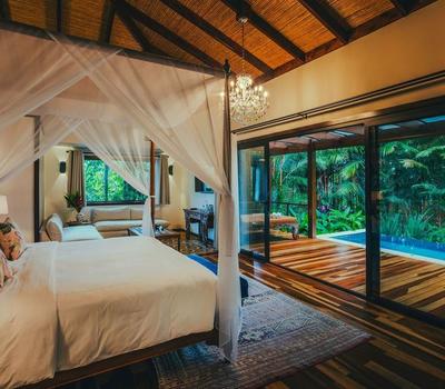 The Springs Villa is a secluded and luxurious accommodation at Costa Rica’s adults-only Nayara Springs. Set on the fringes of the Arenal Volcano, the resort is connected to its sister property Nayara Resort, Spa & Gardens by a footbridge over a ravine of tropical rainforest. Highlights of the Springs Villa include private plunge pools fed by mineral hot springs and wraparound patios surrounded by lush flora and fauna