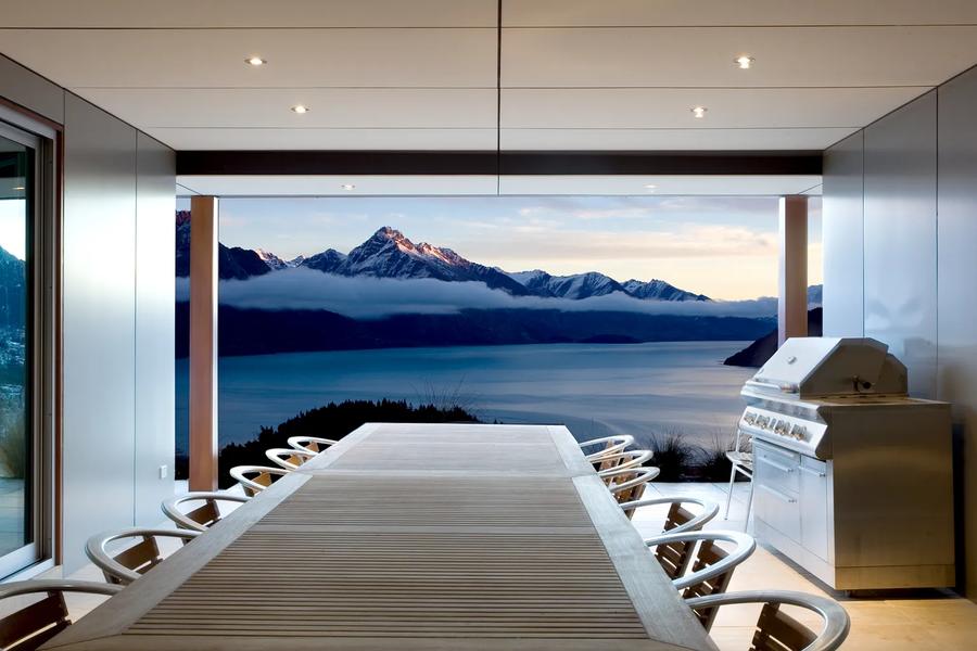 Ekara House is a luxurious accommodation nestled high on Queenstown Hill, just 7 km from Queenstown Airport, with breathtaking views of Lake Wakatipu and the Southern Alps. This stunning property features five master bedrooms, each boasting ensuite bathrooms and designed to accommodate up to 10 guests.