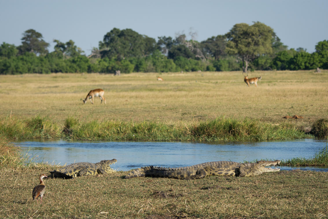 Guests can expect regular sightings of elephant, buffalo, giraffe, zebra, and red lechwe, with predators a major highlight. Lion, leopard, wild dog, and spotted hyena are frequently encountered, particularly during the dry season when animals gather around permanent water sources such as the Khwai River.