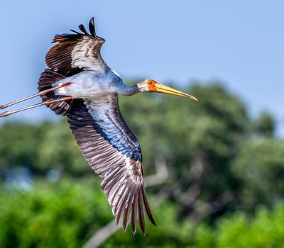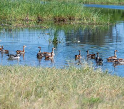 Water-associated species are especially prolific, along the river systems. The surrounding woodlands support a wide variety of raptors, rollers, bee-eaters and hornbills,.