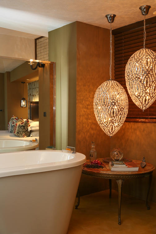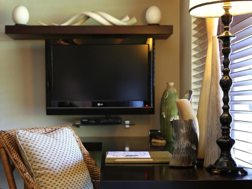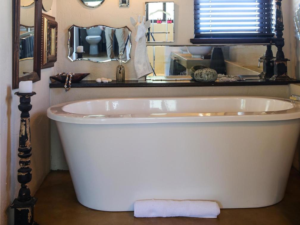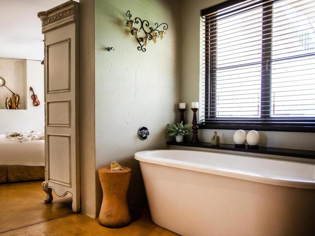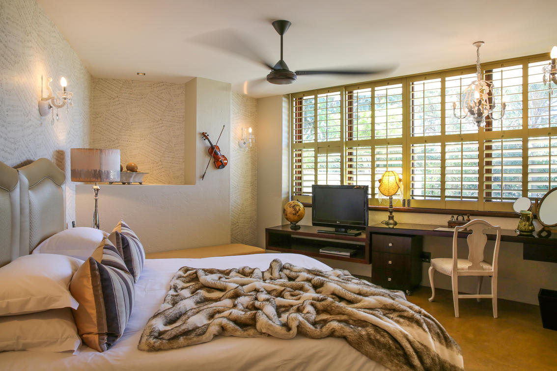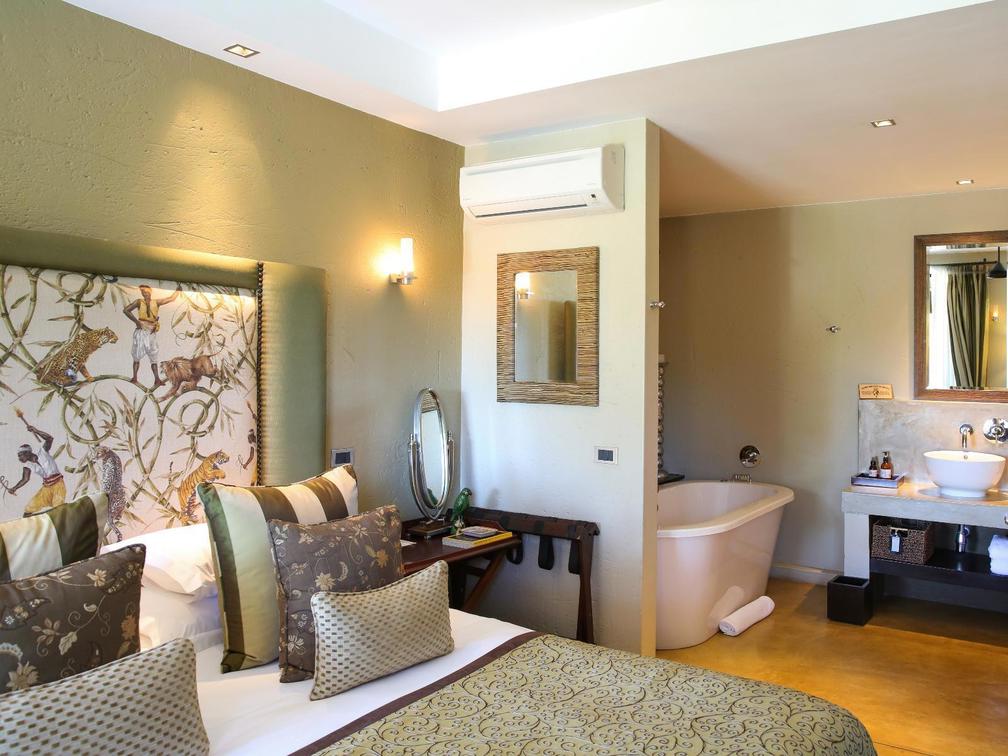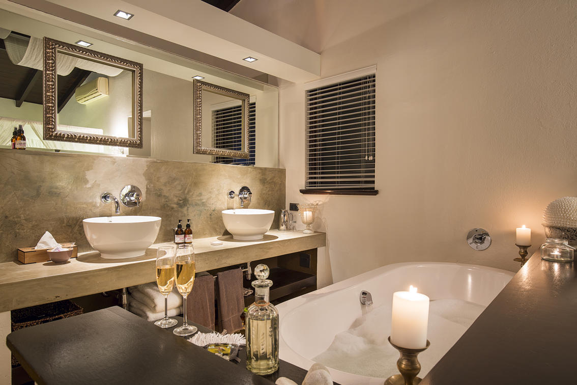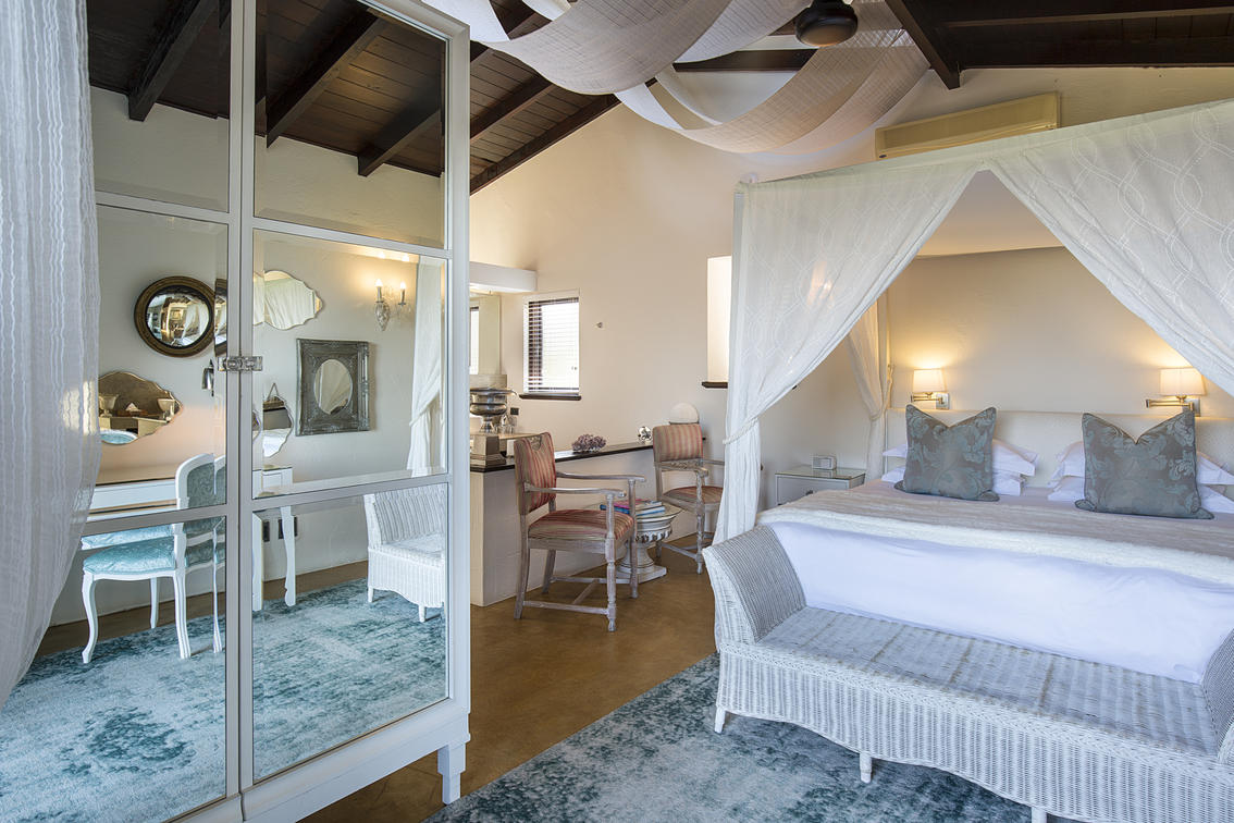 The African-zen-inspired top-level suite has an ocean view, king bed, private balcony, air-con, fan and a TV. An open-plan bathroom with freestanding bath, large shower, twin basins & separate toilet/bidet. Free Wi-Fi, laundry, tea & coffee.