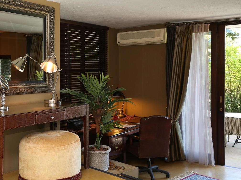 Colonially decorated middle-level suite with garden views, king bed, furnished balcony, air-con, fan and a TV. An open-plan bathroom with freestanding bath, large shower, twin basins and separate toilet/bidet. Free Wi-Fi, laundry, tea & coffee.