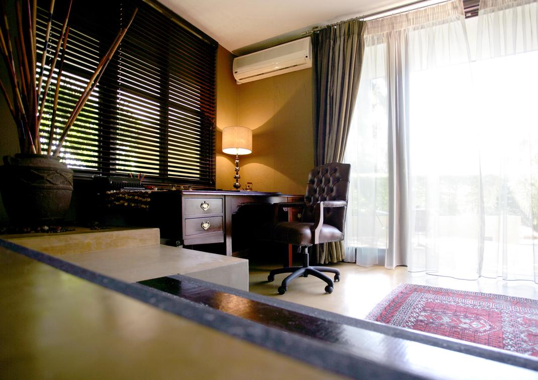 Sumptuous, moody decor, king bed, air-con, fan and a TV. A furnished deck flows onto the communal pool and garden. An open-plan bathroom with a freestanding bath, large shower, twin basins and a separate toilet/bidet. Free Wi-Fi, laundry, tea & coffee.