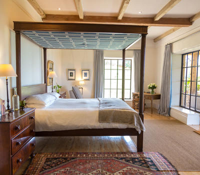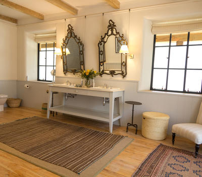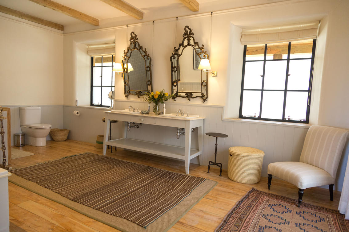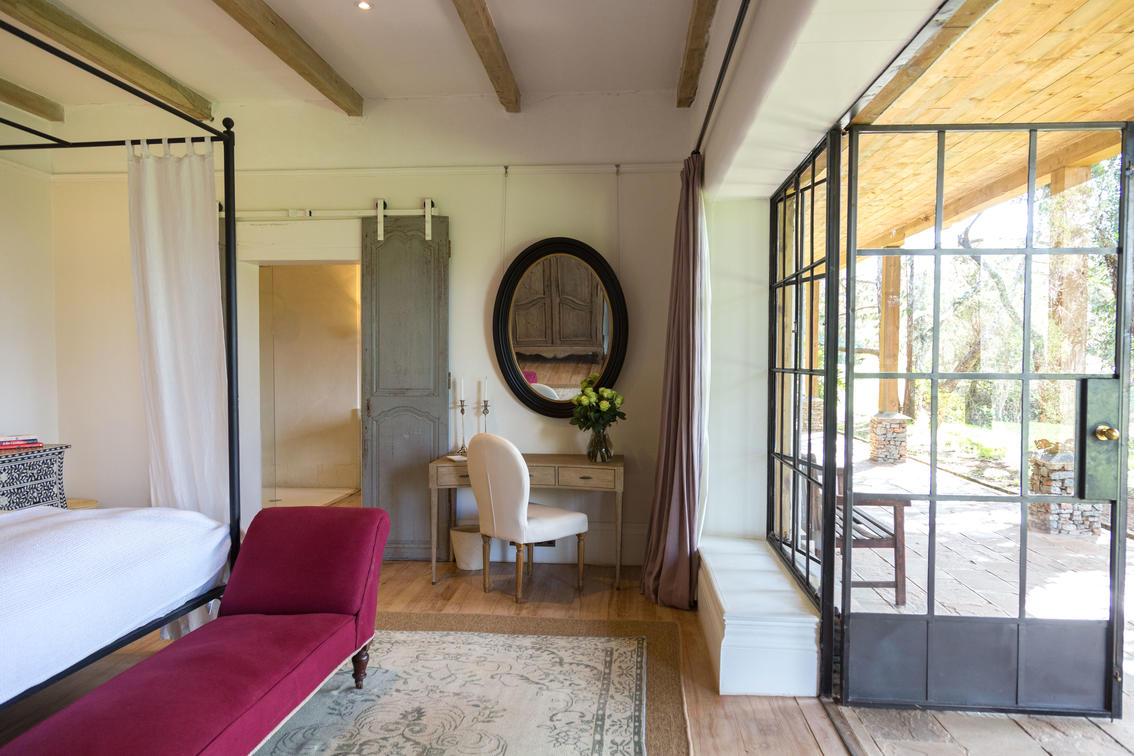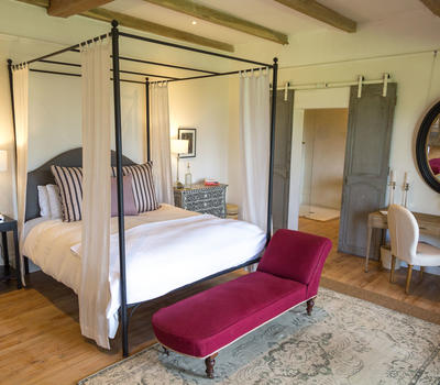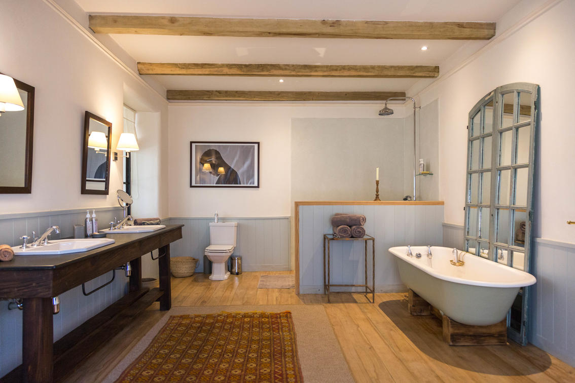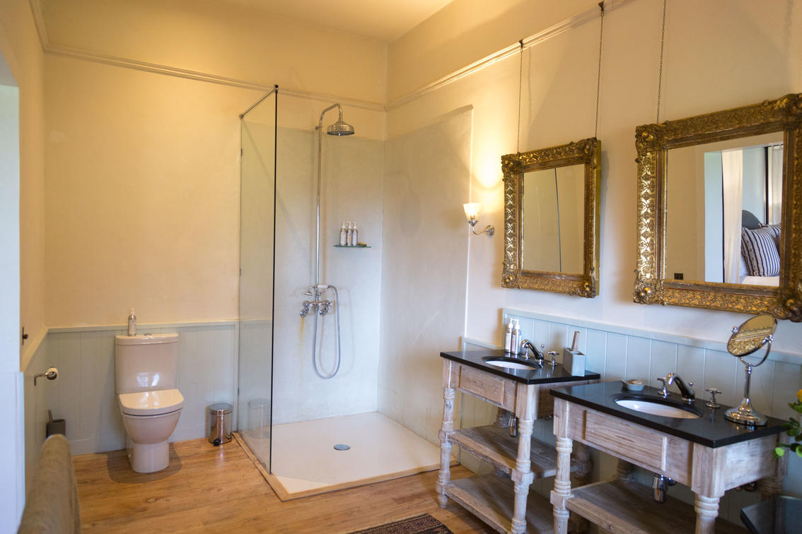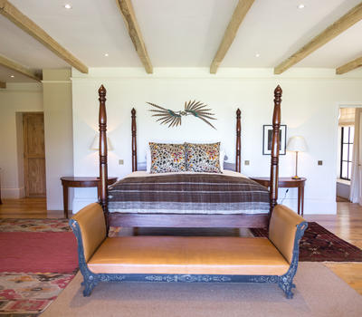 The master bedroom and nearby master guest, these two rooms are part of the main building, which features a large wraparound verandah, offering guests a lovely private, relaxing outdoor space. These are of course the closest rooms to the main living areas, and all feature hugely comfortable beds, baths and showers in the ensuite bathrooms, and quiet at the end of the corridor away from the bustle of the house.