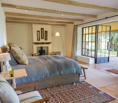 Set above forest canopies looking down over Lolldaiga's northern valley, the Rooms One and Two are part of a separate cottage and incredibly peaceful and quiet. They share a large wrap-around verandah with private sitting room and swing bed, and both have large glass front walls to let in masses of light and the sounds of birds singing. They each have two doors, one at the front and one at the back, the latter are close together - though separate - for families who want to be able to reach each other quickly. The beds are sumptuously comfortable, the bathrooms equipped with both showers and baths.