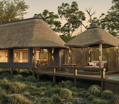 Drawing inspiration from nature’s unending colour palette, each suite’s decor is unique, celebrating the sage green, subtle pale -yellow and dusty pink hues woven with other layered textures of this pristine wilderness. Each thatched suites’ decor draws inspiration from the ancient forest in which it is nestled, reflecting some of the Okavango’s great trees – the Marula, Sausage, Ebony and Mokolwane Palm.