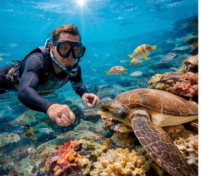 Equipped with high-quality snorkeling gear, guests are guided to carefully selected locations known for their rich biodiversity. Drift above colourful coral reefs and rocky outcrops while encountering a variety of tropical fish, and, with a bit of luck, spot graceful sea turtles gliding through the water. Your experienced guide will share insights into the local marine ecosystem, enhancing the experience with fascinating facts and ensuring a safe and enjoyable outing.