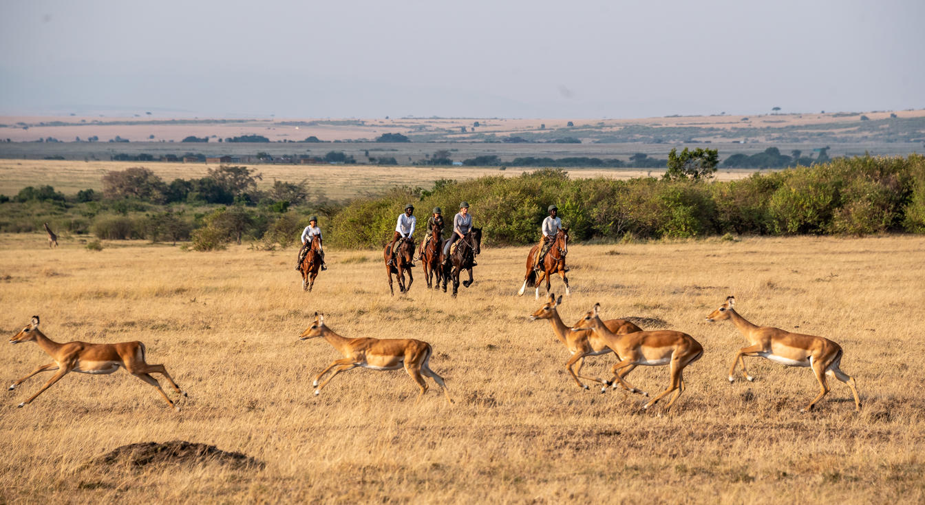 House in the Wild has a herd of 16 well-mannered horses based at the Mara Training Centre, a 15 minute drive from the lodge. A range of rides are on offer to suit all abilities. From easy rides in the Naretoi sanctuary, passing giraffe and zebra, to more energetic canters through the Enonkishu conservancy, this is a magical way to experience the spirit of the wild. Early morning is the best time to enjoy the wildlife and ride before the heat of the day, culminating in a beautiful bush breakfast.