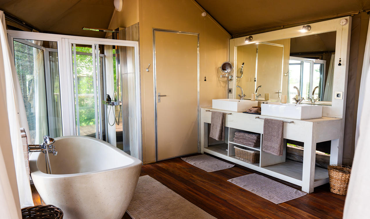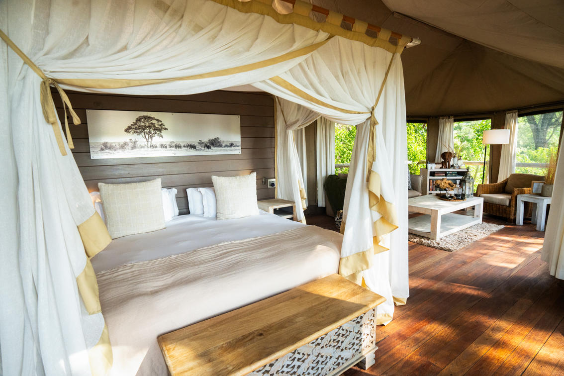 Beautifully appointed luxurious suites of 110 square meters. Each suite includes a private spacious viewing deck, a private lounge, double bed and en-suite bathroom. Bath and shower, personal laptop safe, mosquito netting around the bed, power sockets to charge electronics, complimentary sherry, raised walkways to main lodge, and laundry service.