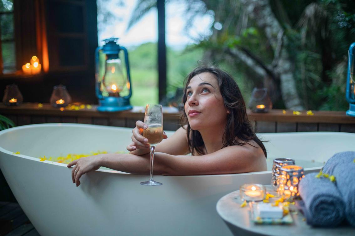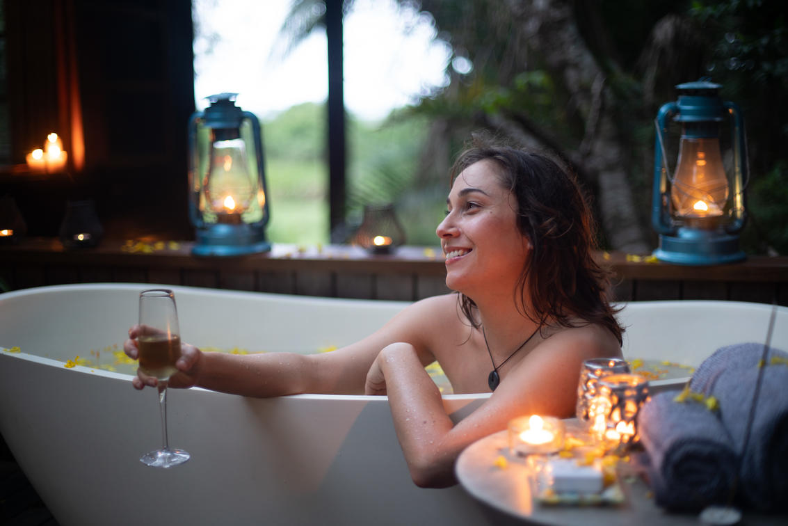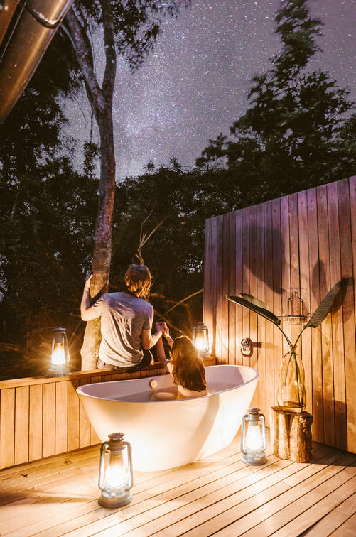 There is a separate Bathroom with indoor shower & Toilet. The indoor shower opens out to an outside Shower & Bath. (Nothing beats an outside bath and shower!)