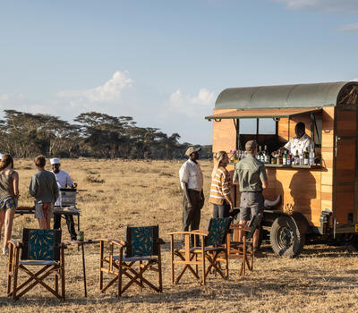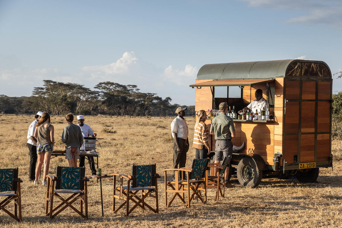 Sundowners are an essential part of any safari experience. With a drink in hand and some homemade ‘bitings’ (the Kenyan term for canapes), watch the African sun sink low in the sky. Guests are frequently joined by rhinos and large journeys of giraffe moving silently through the dusk, making for magical evenings. There is also a fabulous, fully-stocked mobile bar named 'Jolene', created from an upcycled horsebox! Jolene adds a real touch of quirky glamour to the Solio sundowner experience.