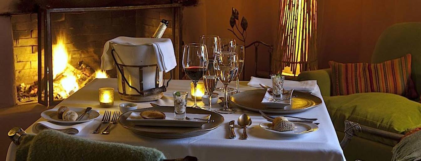 This hotel restaurant, for the exclusive use of guests, guarantees privacy. The team of dedicated professionals, together with the chef, Juan Pablo Mardones, have designed a sophisticated menu: fusion of Altiplano and international food, giving you a taste of new flavours and aromas using typical ingredients of the area which are part of the staples used by the native people: purple potatoes, patasca (a stew made with tripe, veal, potatoes, stewed corn and peppers), quinoa, or chañar (a meaty, sweet fruit from the Chilean chañar or palo verde tree). Wake up every morning to home-made delights and be charmed during the day and night with a menu customized to personal taste and needs.