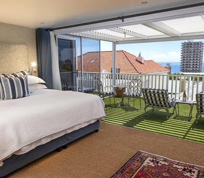 Perfect for those seeking extra space and elegance, our ground-floor Deluxe Rooms feature unique designs and charming small balconies. Stylish and comfortable, they offer a luxurious retreat to relax and unwind after a day exploring Cape Town.