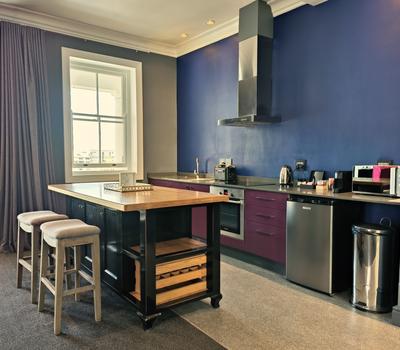 Top-floor luxury with a kitchenette, generous living area with cosy fireplace and private balcony boasting breathtaking views. Spacious and self-contained, it comfortably accommodates 2–3 guests—perfect for couples or small families seeking an unforgettable city escape.