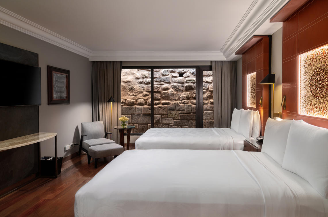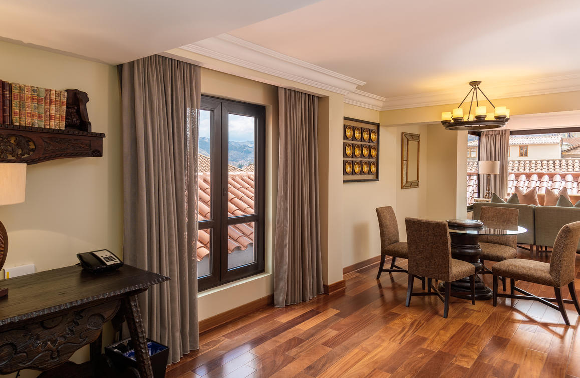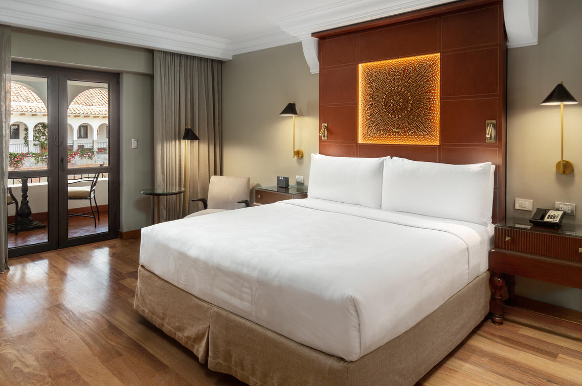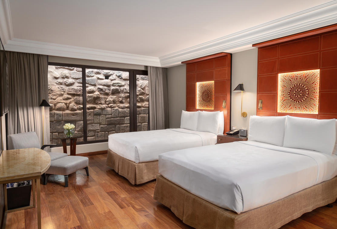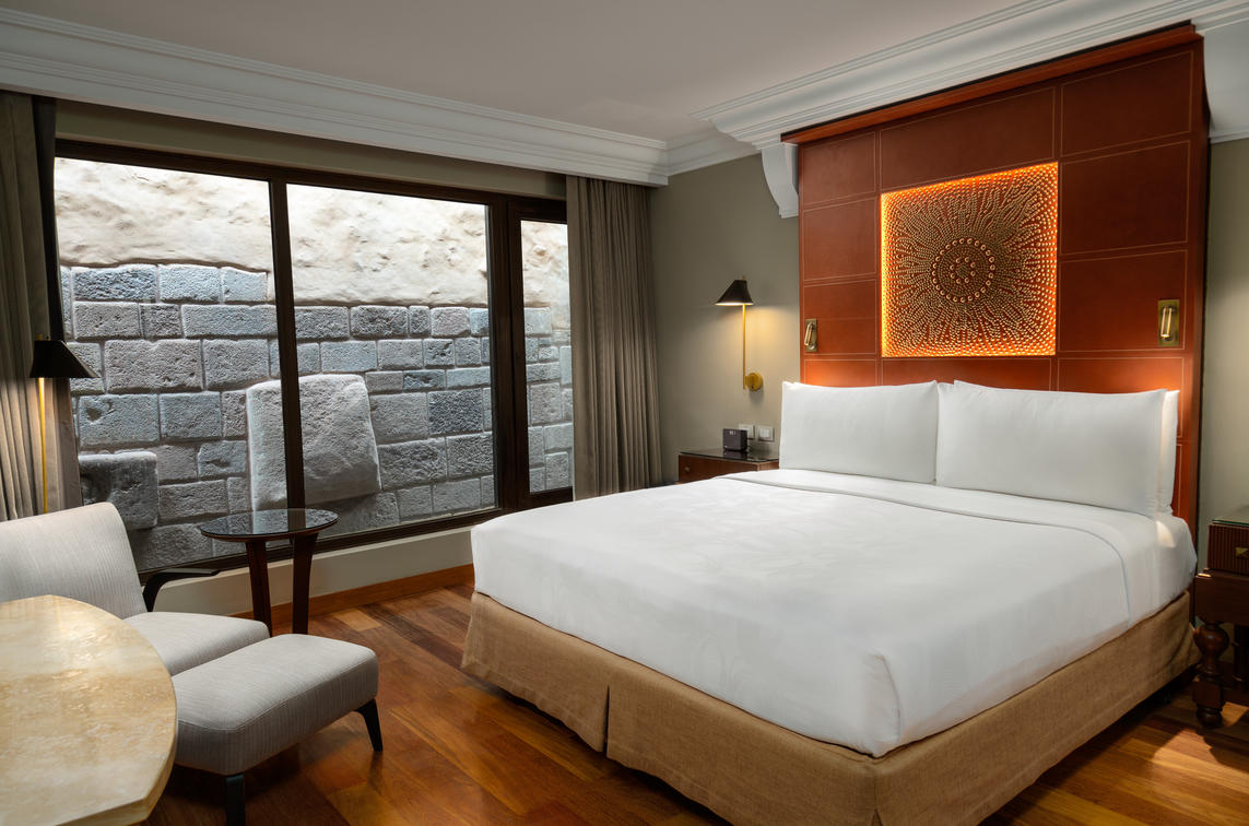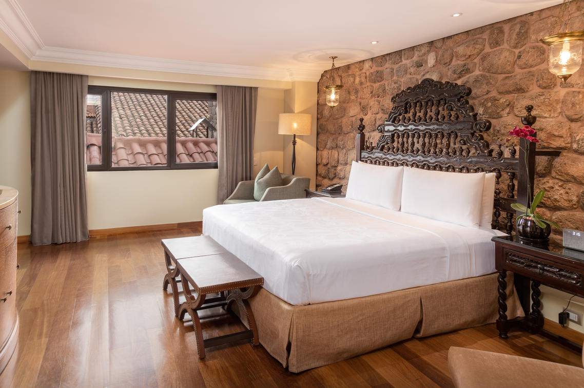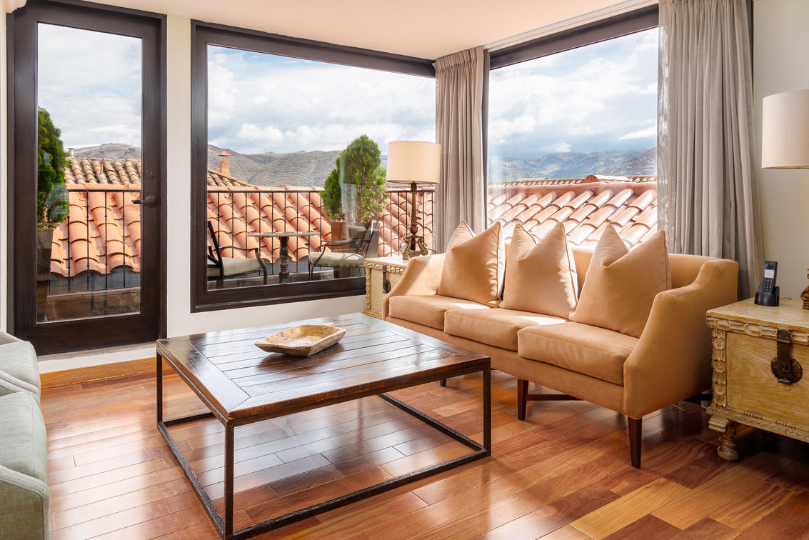 a view of Inca ruins and a terrace. Suite connected to a Classic Inca room with a king sized bed.