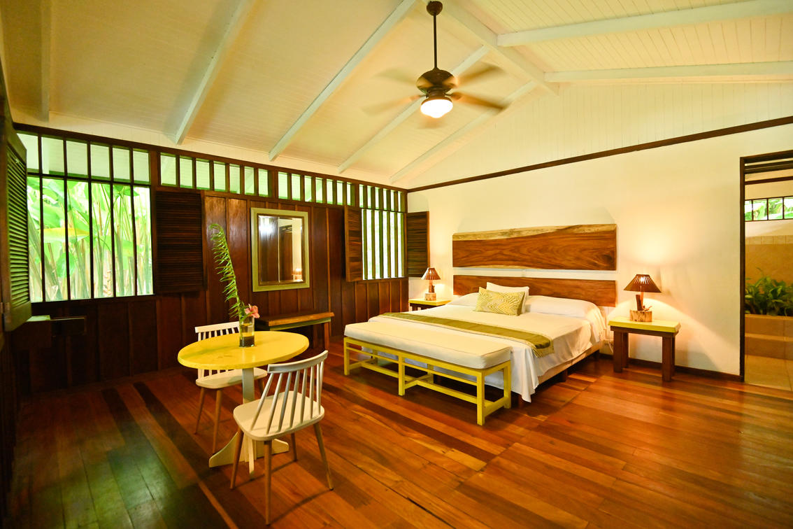 All standard rooms feature a tropical and rustic atmosphere, surrounded by the forest, the sounds of the river or the ocean, and the natural scenery. They feature ceiling fans (No a/c), outside porch with hammocks and rocking chairs, private bathroom and in-room safety deposit box.