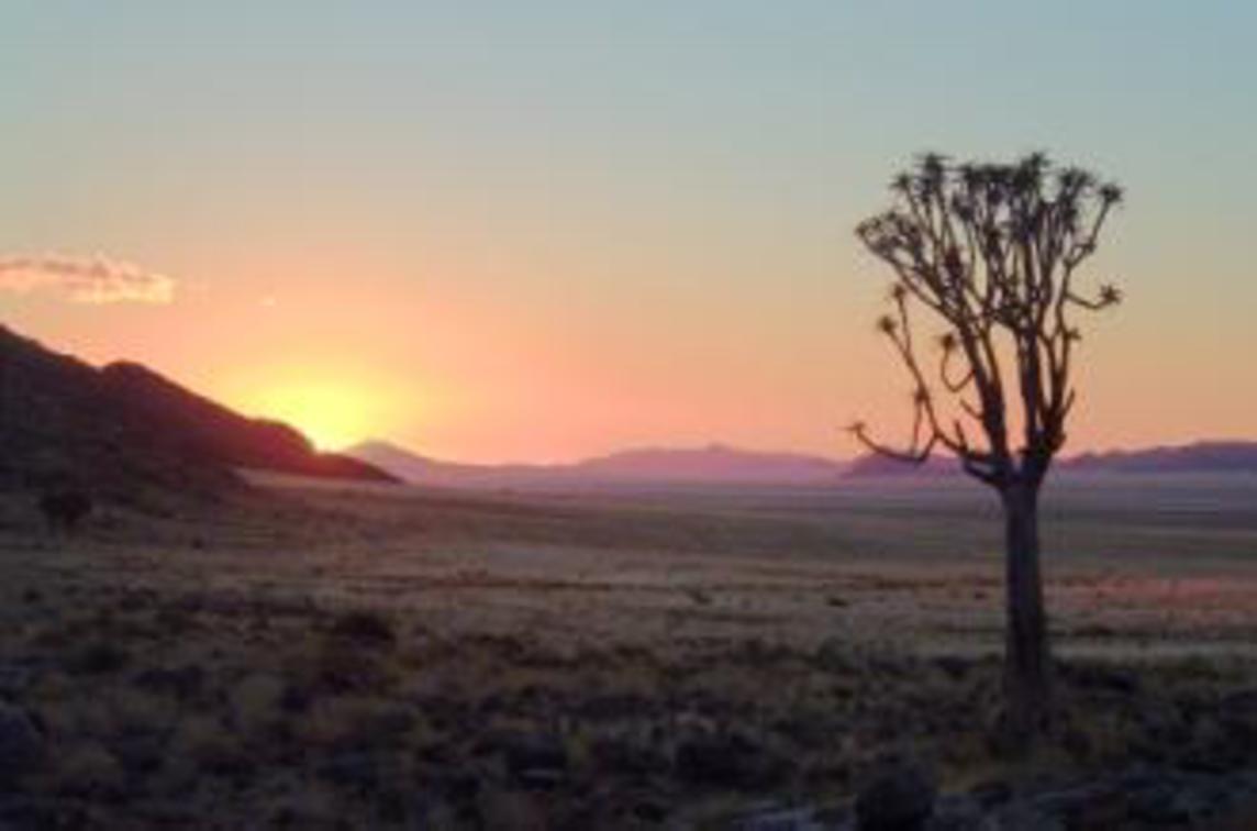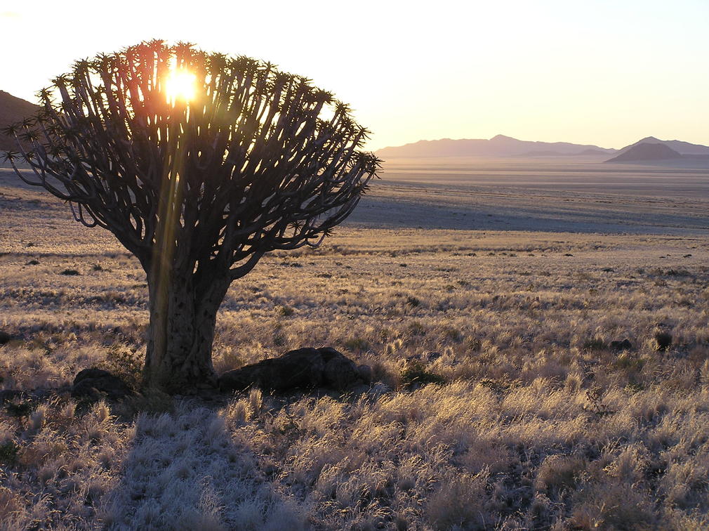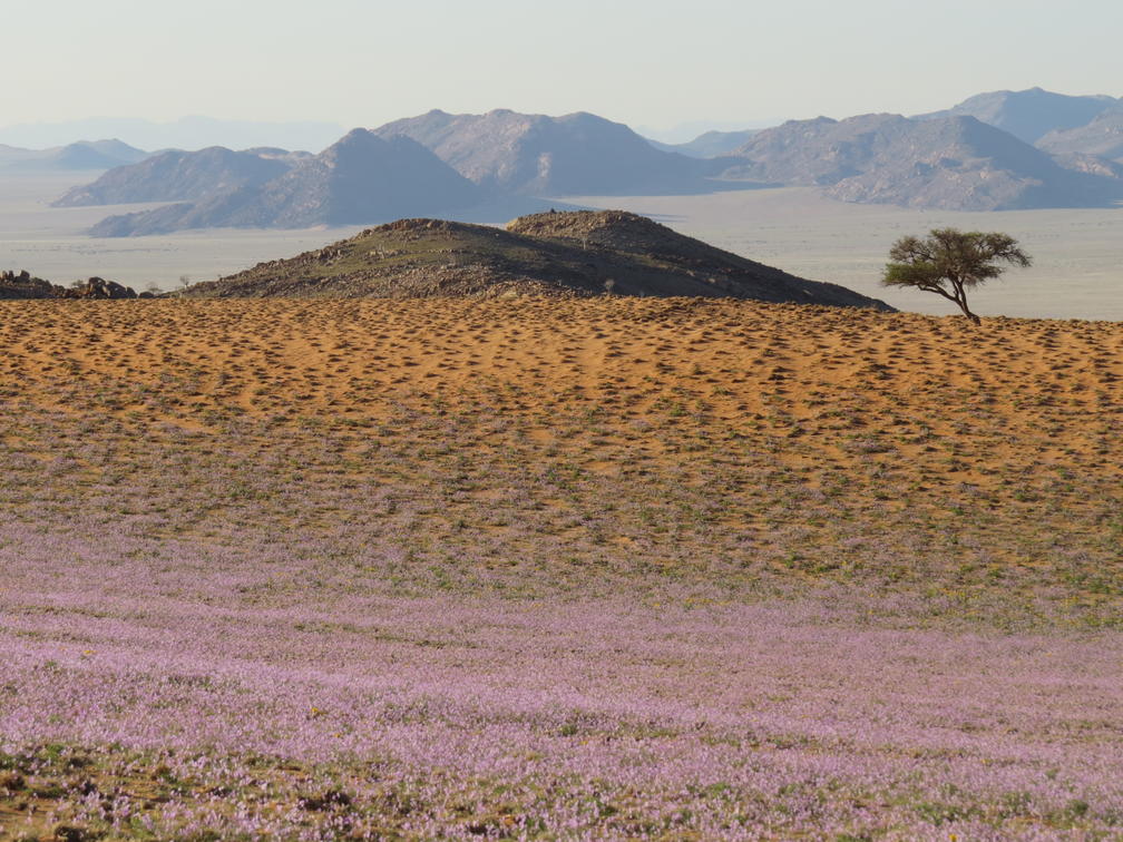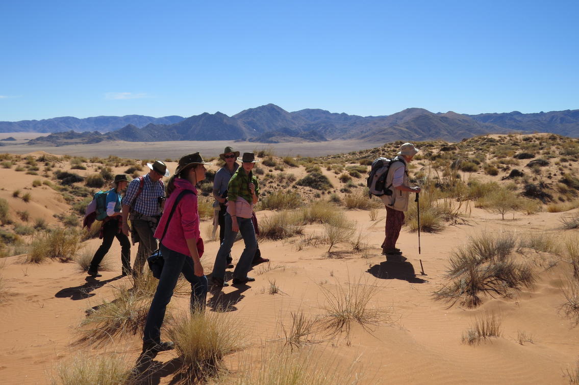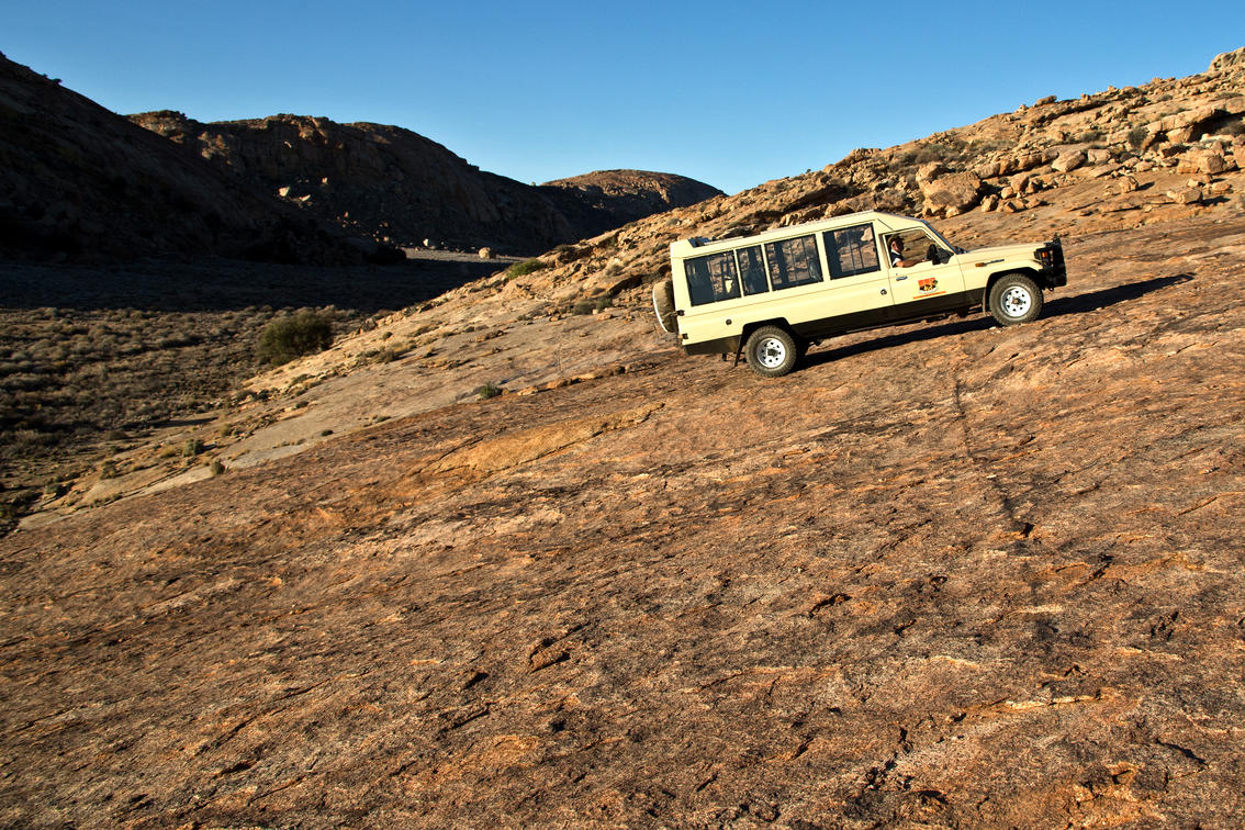 After about 60 km we approach the highlight of the trip: the Aurus Mountains. Here a 90-minute hike has to be done, between endemic plants and other rare plants, some of which require a trained eye to be discovered. At the highest point, there is an upright stone, through whose Africa-shaped “peephole” you can get an impressive view of the Roter Kamm Crater, which still lies about 20 km away.