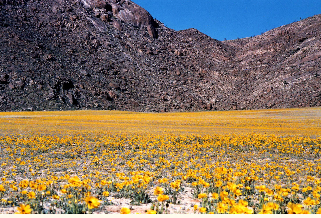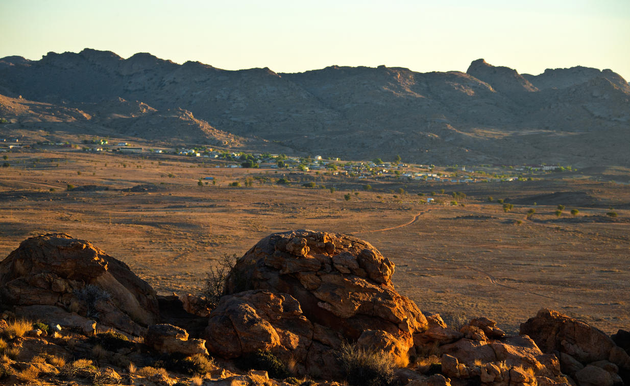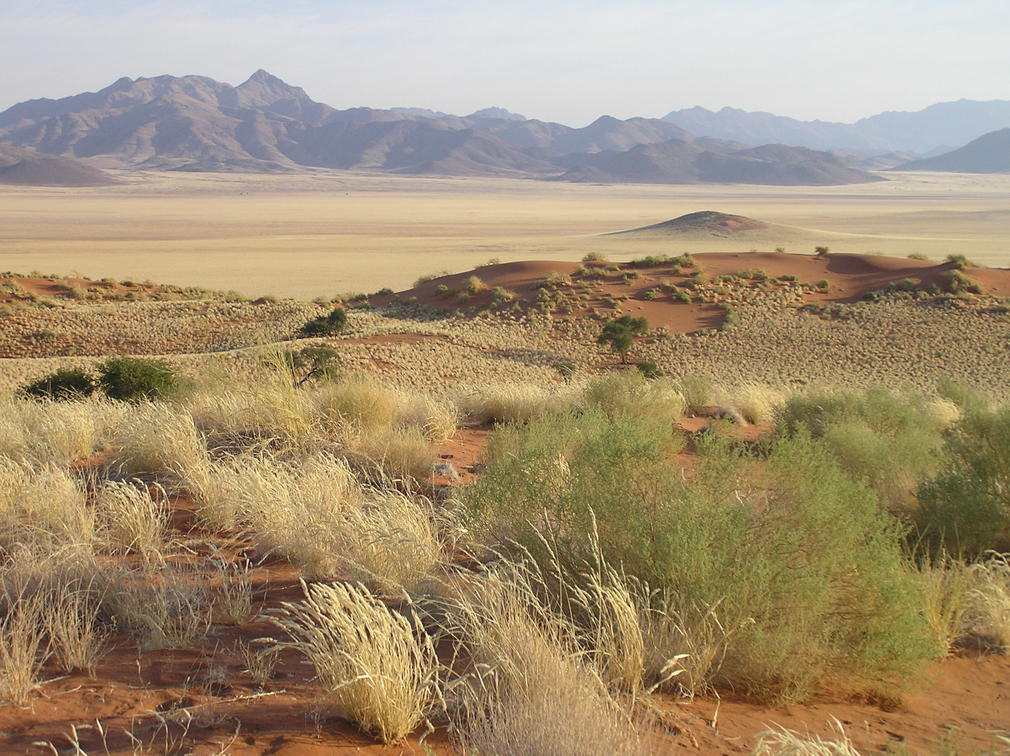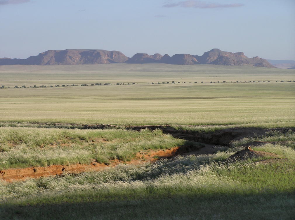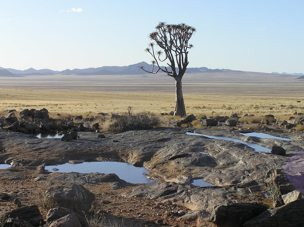 After about 60 km we approach the highlight of the trip: the Aurus Mountains. Here a 90-minute hike has to be done, between endemic plants and other rare plants, some of which require a trained eye to be discovered. At the highest point, there is an upright stone, through whose Africa-shaped “peephole” you can get an impressive view of the Roter Kamm Crater, which still lies about 20 km away.