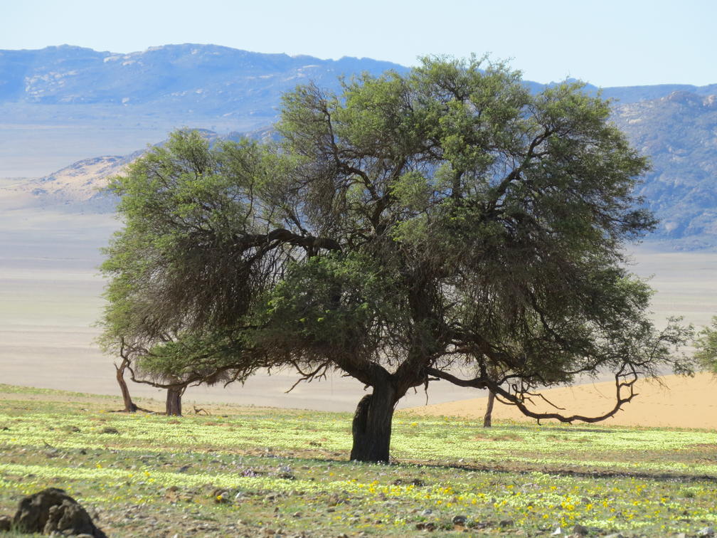 Departure will be at 8h00 from the Bahnhof Hotel in Aus on asphalt road C 13 towards Rosh Pinah in a closed game viewing vehicle. After about 60 km we head west over private farmland/along with river courses through barren but always varied landscapes to the Tsau//Khaeb Park border. In the park, we move along predefined routes through vast desert landscapes, which always offer something interesting and new due to their endless horizons and changing wildlife. Claypans, overgrown dunes, gravel plains are some of the impressions this part of the Namib has to offer. Since this landscape has been a restricted area for almost one hundred years, nature is still very much in its original state.