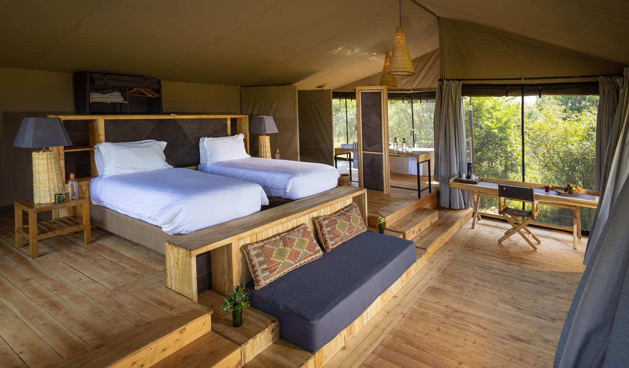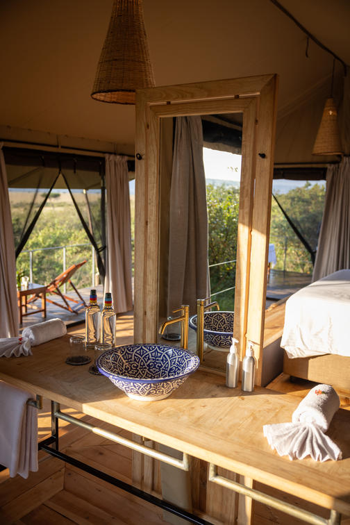 The refurbished family tent shares the innovative architecture of the luxury tents, whilst enabling the ideal balance of privacy and proximity through having two sleeping areas under a shared canvas roof. Each can be outfitted with a king-size or twin beds, and has its own bathroom with shower, sunken bathtub and bio-flush toilets. In-room Wi-Fi permits the instant sharing of safari highlights, while the expansive shared deck gives out onto almost infinite views of the rolling plains and isolated koppies of the Naboisho Conservancy.