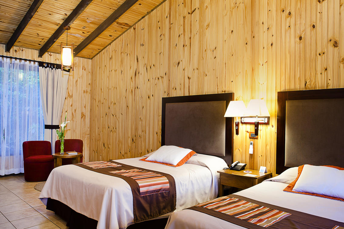All standard rooms have two double beds, a desk, a night table, a small living room, shower and private bathroom, plus free wifi connection and parking near the room.