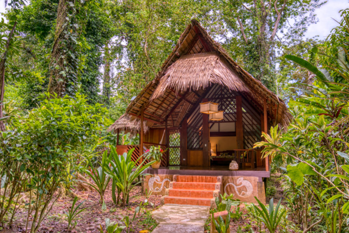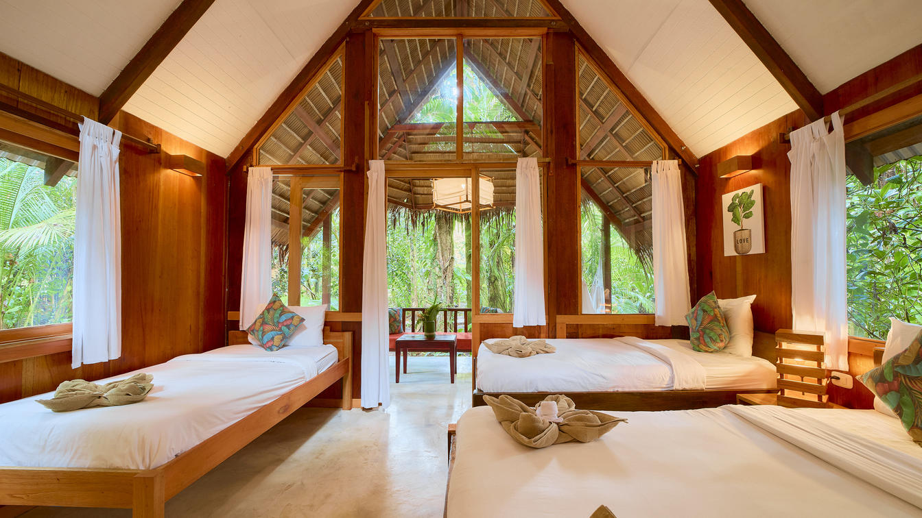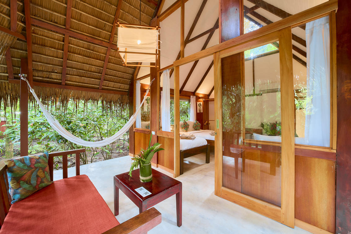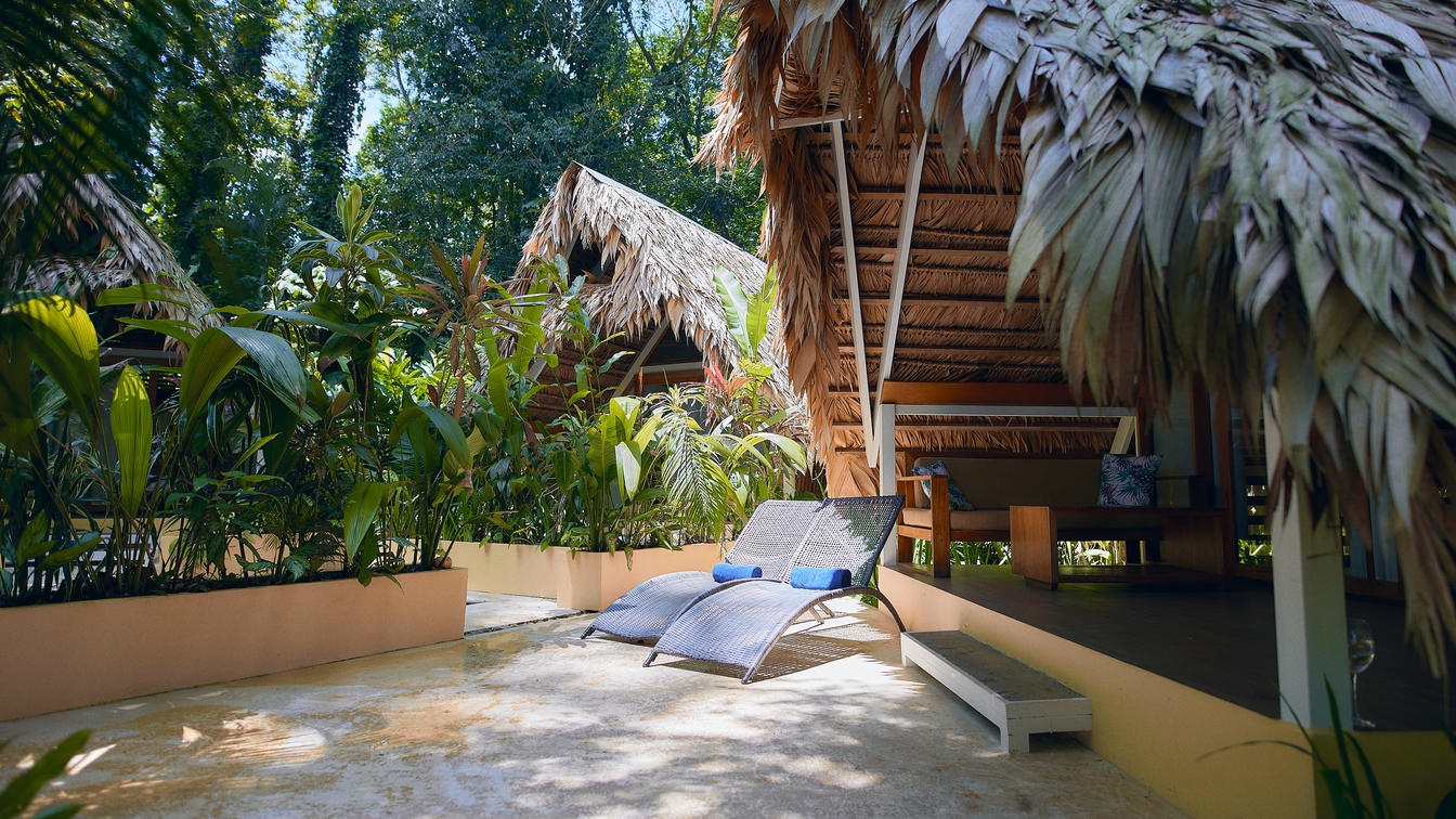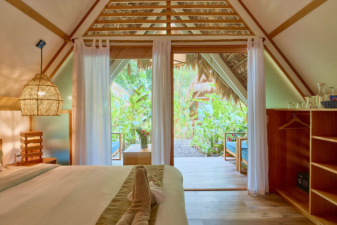 40 sqm double tepee room with king size bed, swim-up access to the pool from the terrace and all the services and home comforts. Surrounded bu jungle. This room is adults only and perfect for couples.