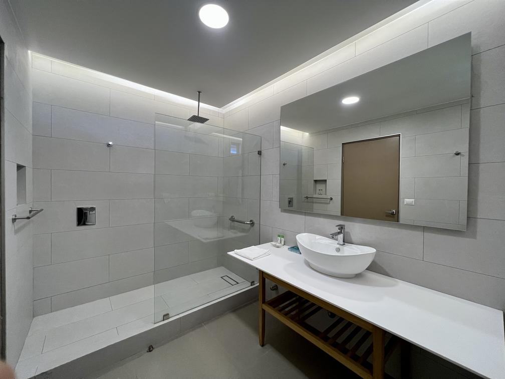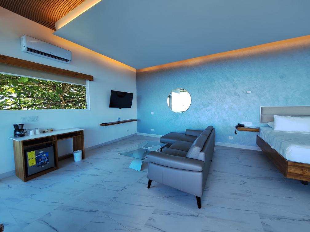 Imagine waking up to the gentle sound of waves and the sight of a sunrise painting the sky with vibrant hues. Unwind in a plush king-size bed adorned with soft linens, or step onto your private terrace to soak in the breathtaking panorama. Relax in the in-suite jacuzzi, perfect for a soothing soak, while the rainfall showerhead offers a refreshing start to your day.