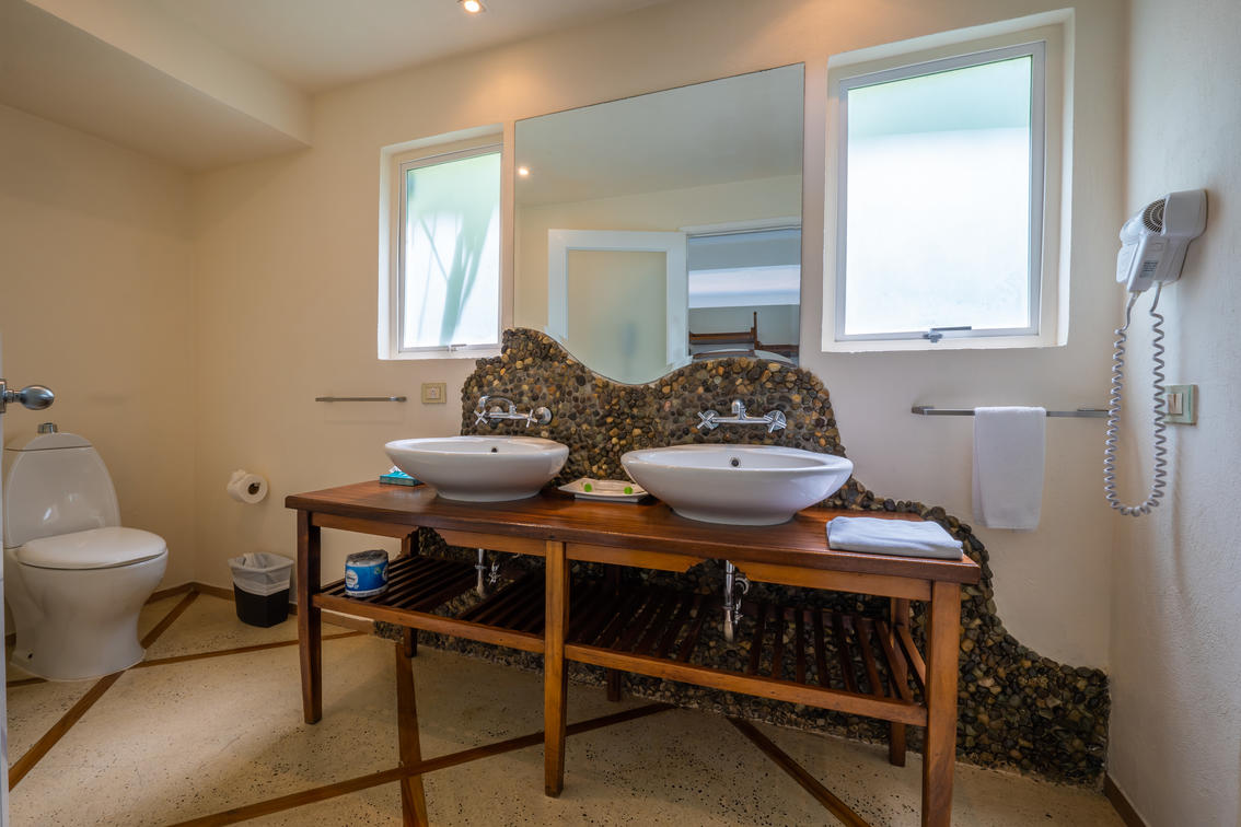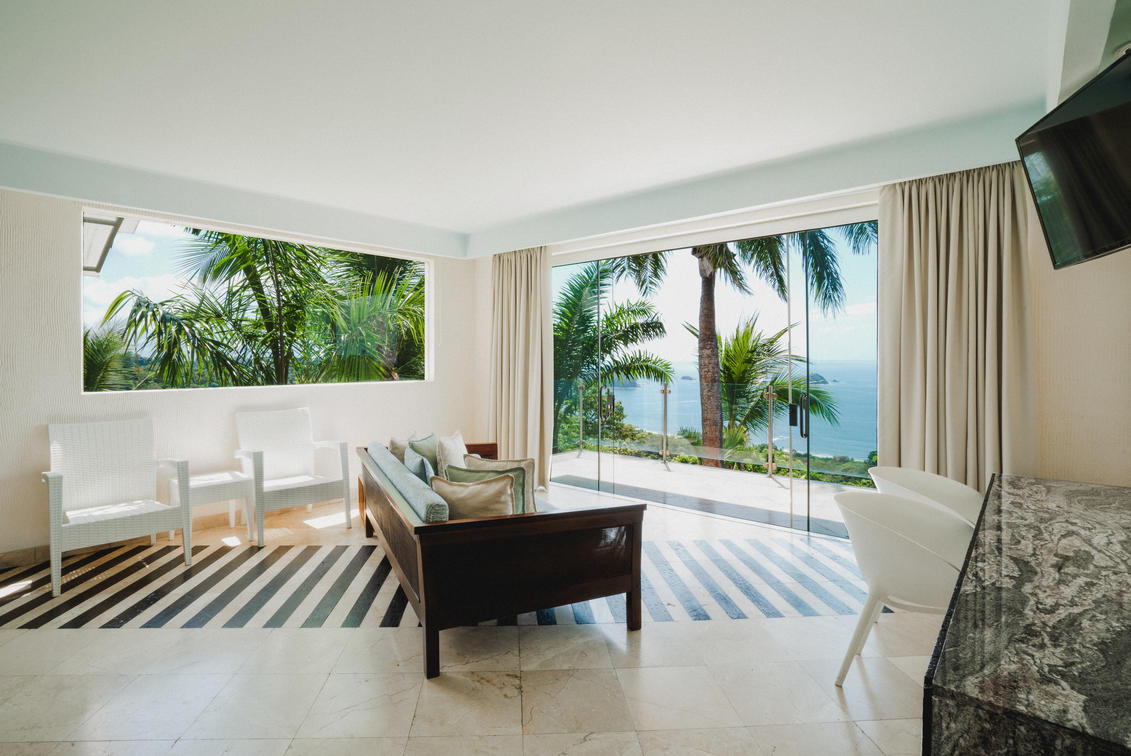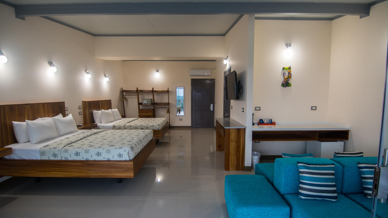 Discover the awe-inspiring vistas of the Pacific Ocean, Manuel Antonio National Park, and legendary Mariposa sunsets from our Corner Sunset Ocean room. Perfectly designed for families, this spacious retreat features two queen beds in a shared sleeping area.