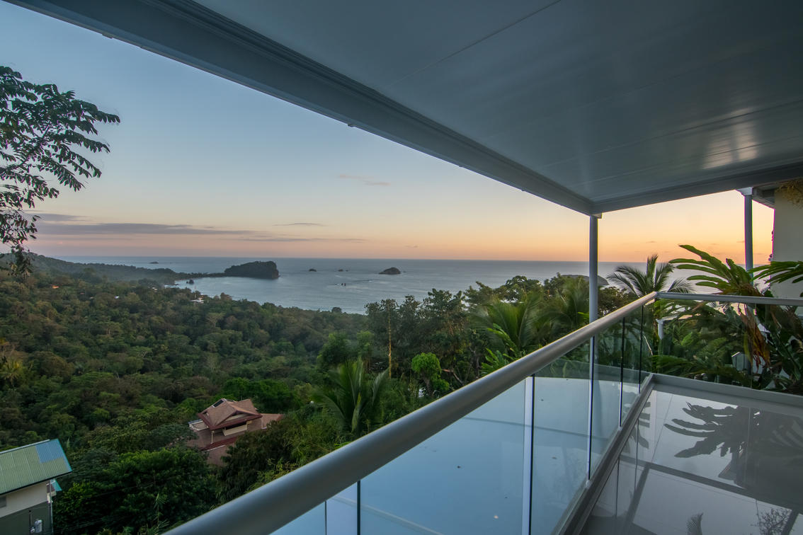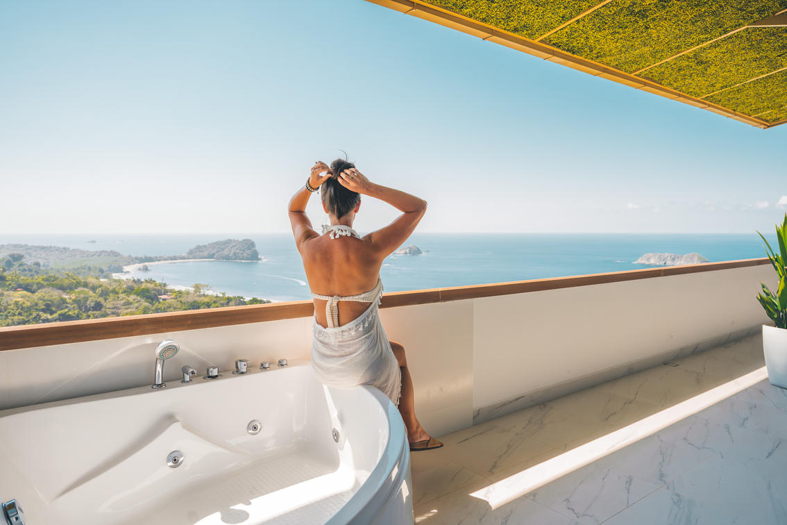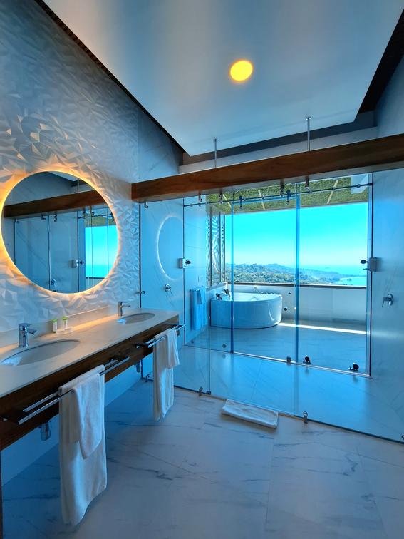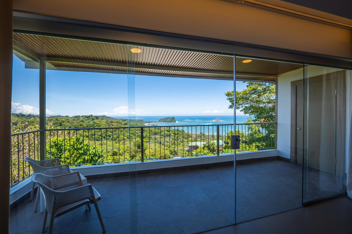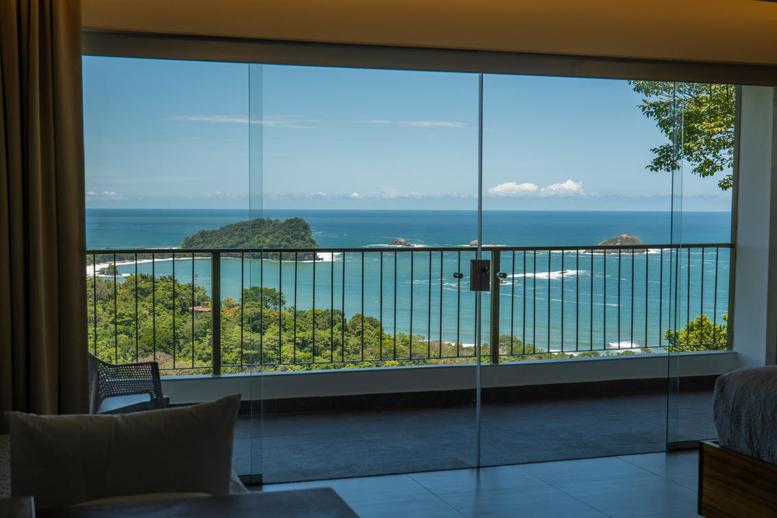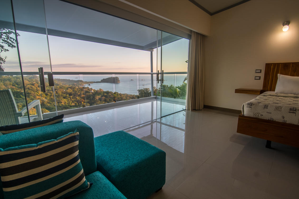 Immerse yourself in unparalleled comfort within our modern Honeymoon Suite. Enjoy breathtaking 360-degree views that encompass the Pacific Ocean, Manuel Antonio National Park, and lush rainforest, offering an unforgettable backdrop for your romantic escape.